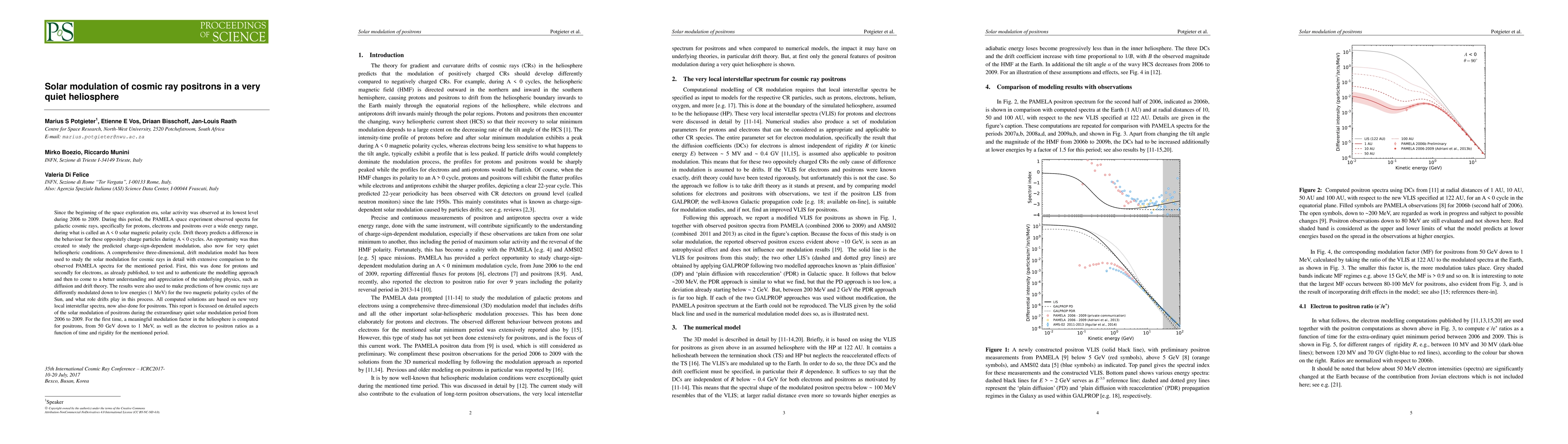 Since the beginning of the space exploration era, solar activity was observed at its lowest level during 2006 to 2009. During this period, the PAMELA space experiment observed spectra for galactic cosmic rays, specifically for protons, electrons and positrons over a wide energy range, during what is called an A < 0 solar magnetic polarity cycle. Drift theory predicts a difference in the behaviour for these oppositely charge particles during A < 0 cycles. An opportunity was thus created to study the predicted charge-sign-dependent modulation, also now for very quiet heliospheric conditions. A comprehensive three-dimensional, drift modulation model has been used to study the solar modulation for cosmic rays in detail with extensive comparison to the observed PAMELA spectra for the mentioned period. First, this was done for protons and secondly for electrons, as already published, to test and to authenticate the modelling approach and then to come to a better understanding and appreciation of the underlying physics, such as diffusion and drift theory. The results were also used to make predictions of how cosmic rays are differently modulated down to low energies (1 MeV) for the two magnetic polarity cycles of the Sun, and what role drifts play in this process. All computed solutions are based on new very local interstellar spectra, now also done for positrons. This report is focussed on detailed aspects of the solar modulation of positrons during the extraordinary quiet solar modulation period from 2006 to 2009. For the first time, a meaningful modulation factor in the heliosphere is computed for positrons, from 50 GeV down to 1 MeV, as well as the electron to positron ratios as a function of time and rigidity for the mentioned period.
