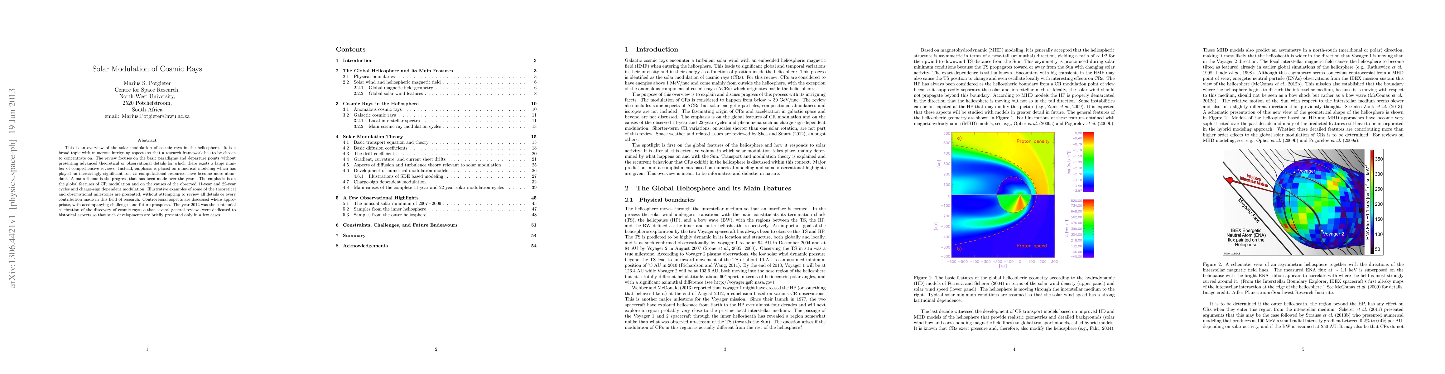 This is an overview of the solar modulation of cosmic rays in the heliosphere. It is a broad topic with numerous intriguing aspects so that a research framework has to be chosen to concentrate on. The review focuses on the basic paradigms and departure points without presenting advanced theoretical or observational details for which there exists a large number of comprehensive reviews. Instead, emphasis is placed on numerical modeling which has played an increasingly significant role as computational resources have become more abundant. A main theme is the progress that has been made over the years. The emphasis is on the global features of CR modulation and on the causes of the observed 11-year and 22-year cycles and charge-sign dependent modulation. Illustrative examples of some of the theoretical and observational milestones are presented, without attempting to review all details or every contribution made in this field of research. Controversial aspects are discussed where appro- priate, with accompanying challenges and future prospects. The year 2012 was the centennial celebration of the discovery of cosmic rays so that several general reviews were dedicated to historical aspects so that such developments are brie y presented only in a few cases.