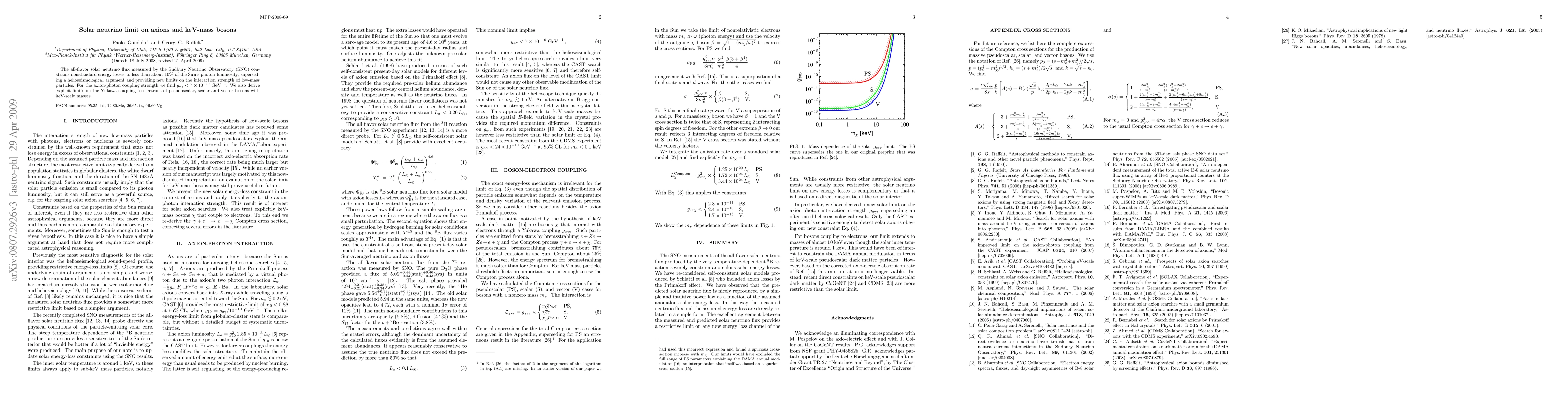 The all-flavor solar neutrino flux measured by the Sudbury Neutrino Observatory (SNO) constrains nonstandard energy losses to less than about 10% of the Sun's photon luminosity, superseding a helioseismological argument and providing new limits on the interaction strength of low-mass particles. For the axion-photon coupling strength we find g_a\gamma < 7E-10 1/GeV. We also derive explicit limits on the Yukawa coupling to electrons of pseudoscalar, scalar and vector bosons with keV-scale masses.