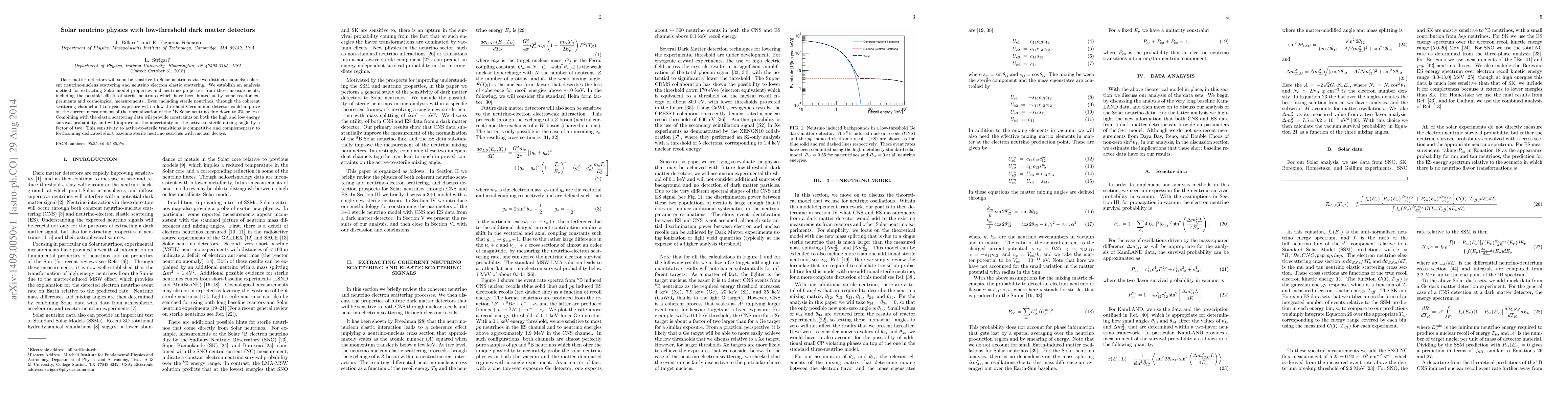 This paper proposes an analysis method for extracting Solar neutrino properties using low-threshold dark matter detectors through coherent scattering and elastic scattering channels. It highlights that a 1 ton-year exposure with such detectors can improve the measurement of $^8$B Solar neutrino flux to within 3% and provide enhanced constraints on sterile neutrino mixing angles.