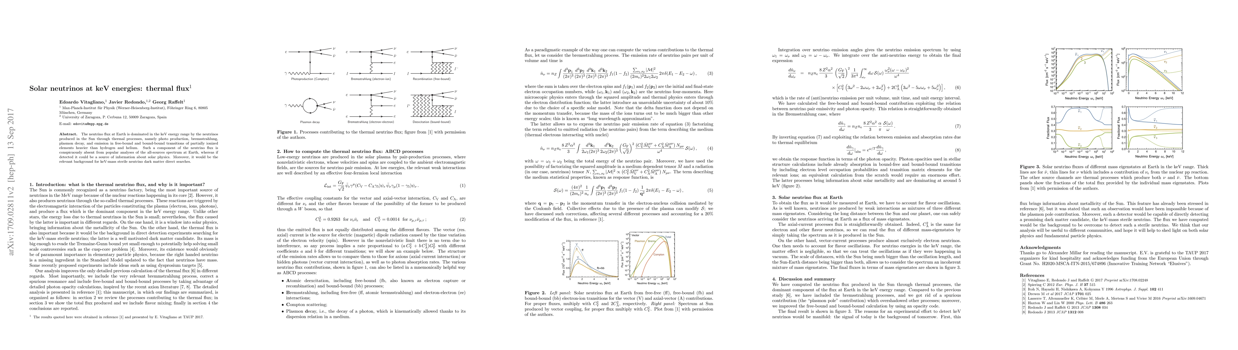The neutrino flux at Earth is dominated in the keV energy range by the neutrinos produced in the Sun through thermal processes, namely photo production, bremsstrahlung, plasmon decay, and emission in free-bound and bound-bound transitions of partially ionized elements heavier than hydrogen and helium. Such a component of the neutrino flux is conspicuously absent from popular analyses of the all-sources spectrum at Earth, whereas if detected it could be a source of information about solar physics. Moreover, it would be the relevant background for keV-mass sterile neutrino dark matter direct searches.