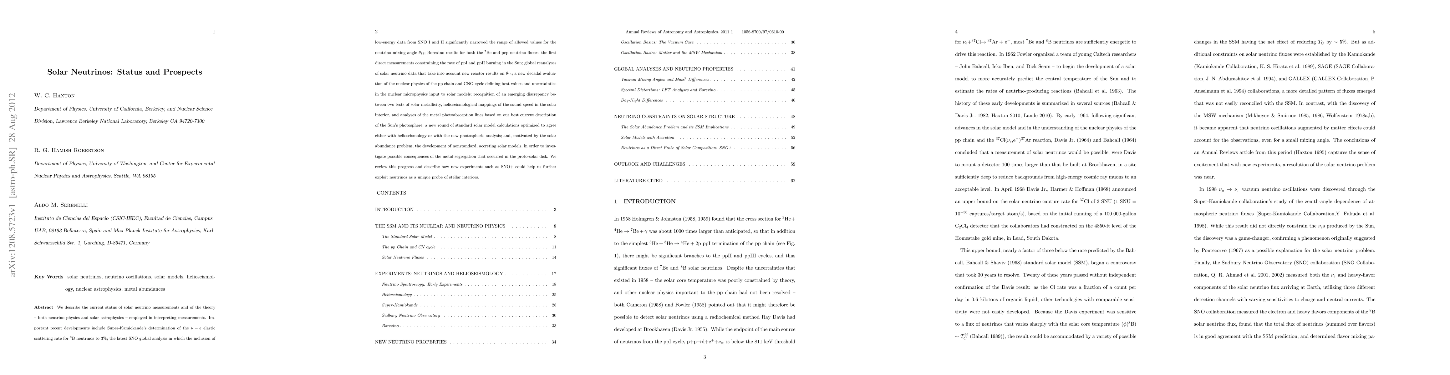 The paper discusses advancements in solar neutrino measurements, including Super-Kamiokande's precise 8B neutrino scattering rate and SNO's narrowed theta12 range. It highlights Borexino's direct measurements of 7Be and pep neutrino fluxes, and reviews recent solar model calculations and nonstandard model developments addressing the solar abundance problem. The paper also looks forward to how future experiments like SNO+ can enhance our understanding of stellar interiors using neutrinos as probes.