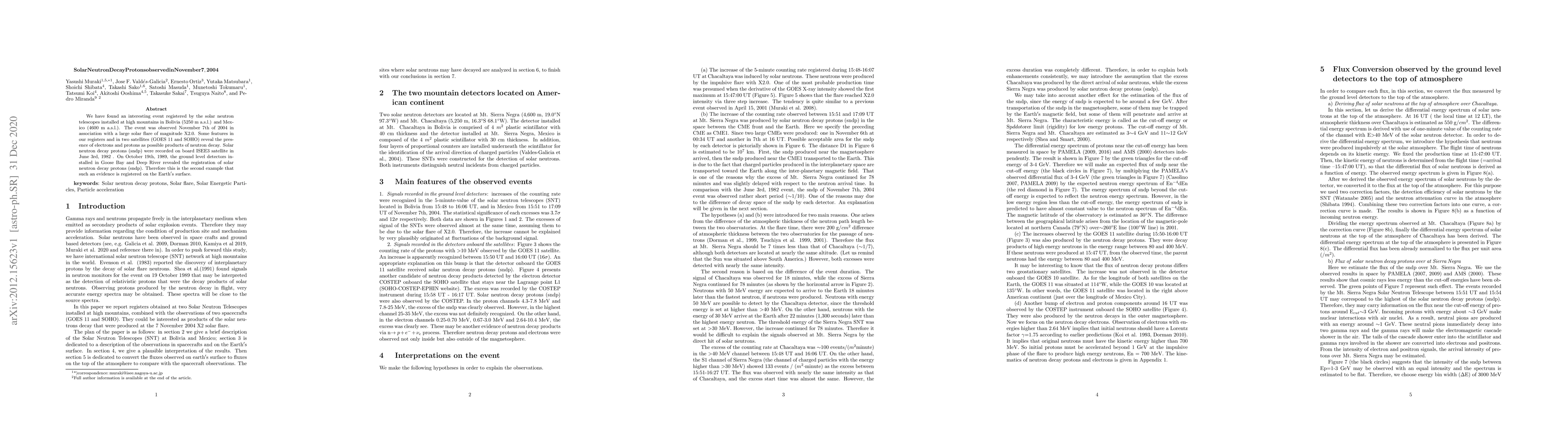Scientists detected solar neutron decay protons on Earth's surface for the second time, confirming previous satellite observations in 1982 and 1989, during a large X2.0 solar flare.