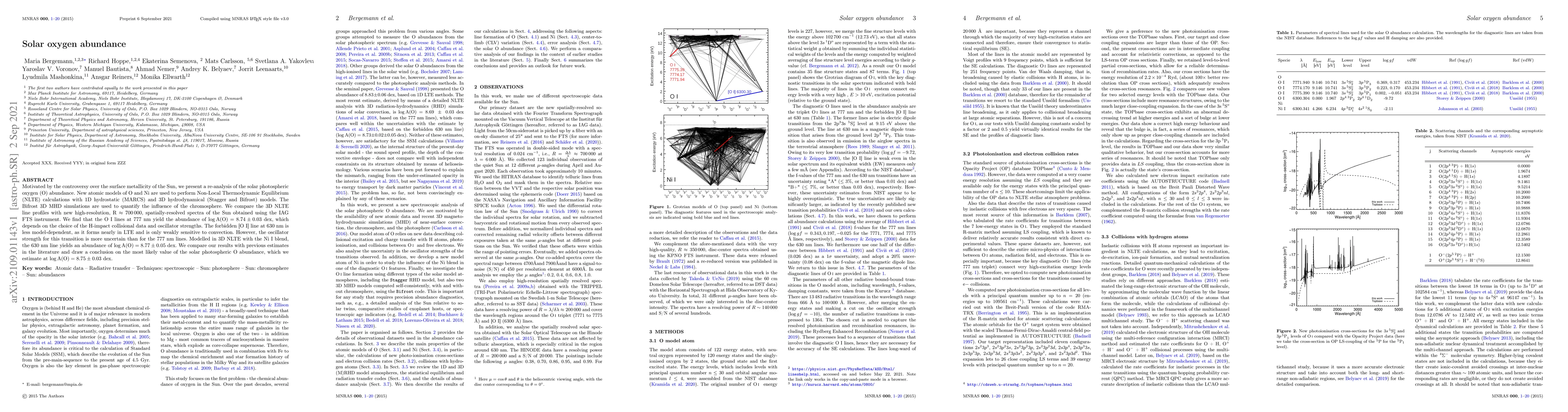 Researchers re-analyzed the solar oxygen abundance using new atomic models and 3D hydrodynamical simulations, finding an estimated photospheric O abundance of log A(O) = 8.75 +/- 0.03 dex.