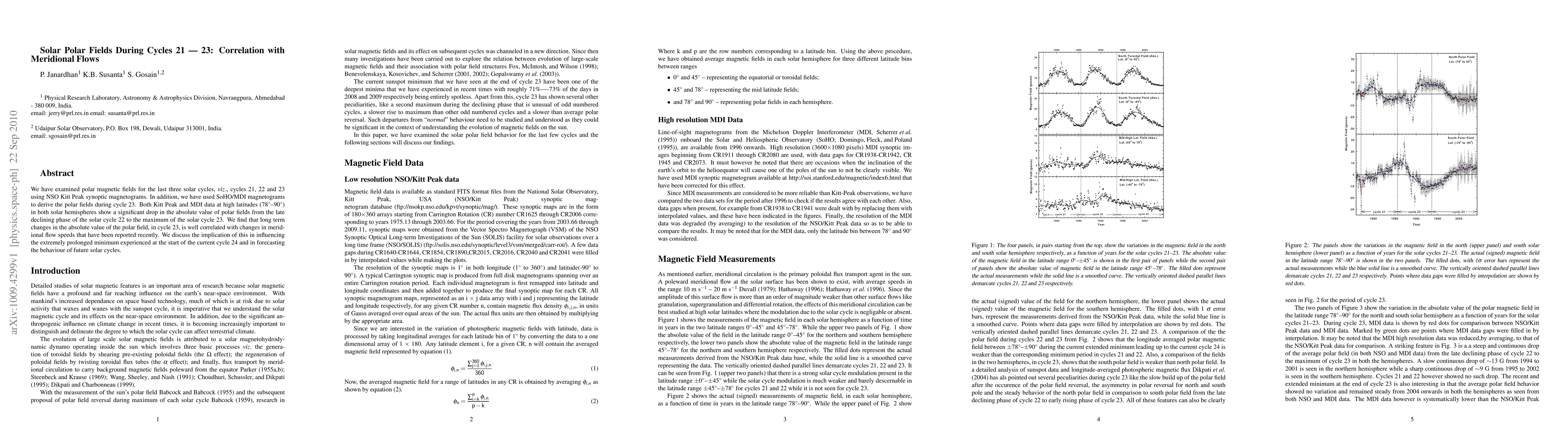 This study investigates the polar magnetic fields of solar cycles 21-23, revealing a significant drop in polar field strength correlating with changes in meridional flow speeds. The findings suggest these changes may influence the prolonged minimum at the start of cycle 24 and future solar cycle predictions.