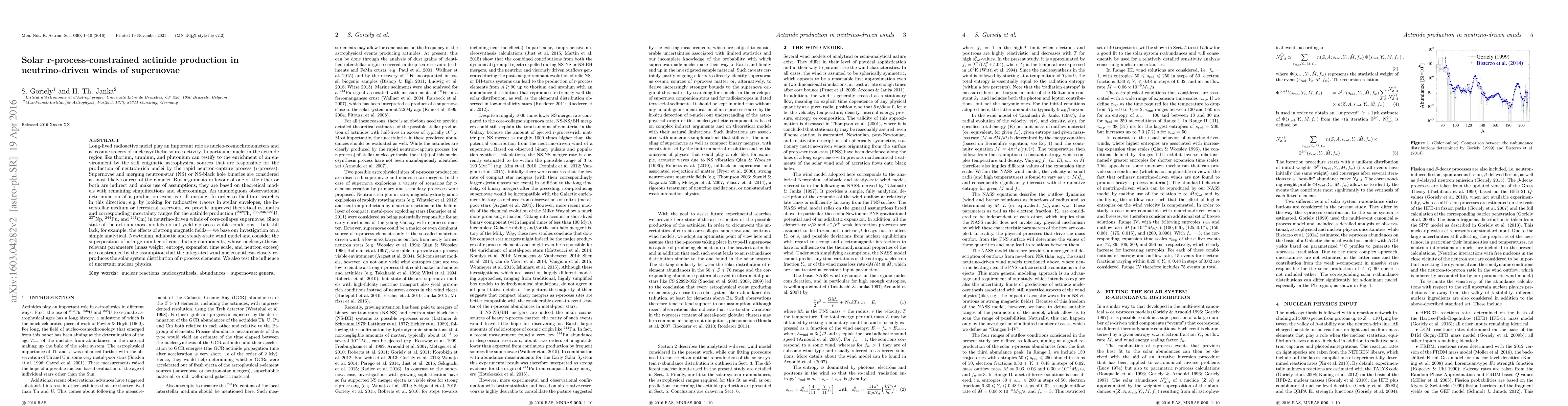The paper presents a novel approach using the NASS wind model to estimate actinide production in neutrino-driven winds, providing a framework for future, more detailed supernova models.