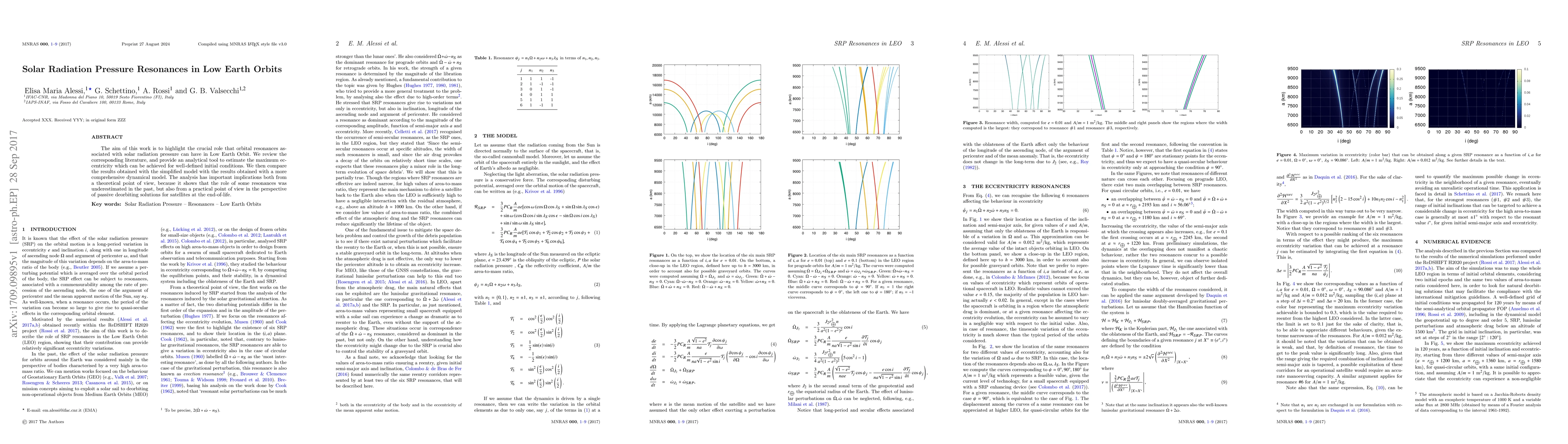 The aim of this work is to highlight the crucial role that orbital resonances associated with solar radiation pressure can have in Low Earth Orbit. We review the corresponding literature, and provide an analytical tool to estimate the maximum eccentricity which can be achieved for well-defined initial conditions. We then compare the results obtained with the simplified model with the results obtained with a more comprehensive dynamical model. The analysis has important implications both from a theoretical point of view, because it shows that the role of some resonances was underestimated in the past, but also from a practical point of view in the perspective of passive deorbiting solutions for satellites at the end-of-life.