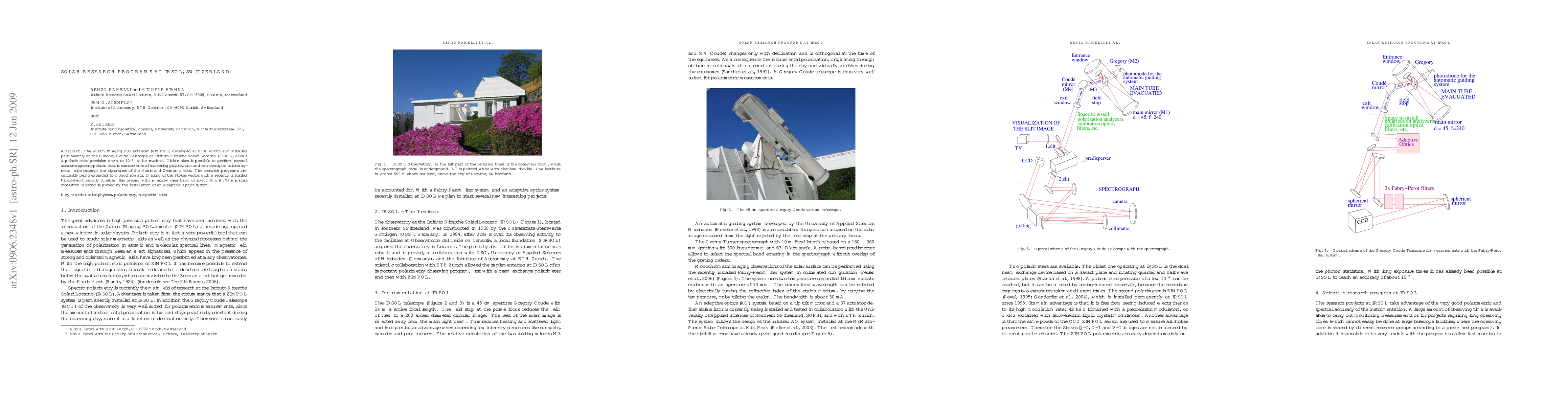 The Zurich IMaging POLarimeter (ZIMPOL) developed at ETH Zurich and installed permanently at the Gregory Coude Telescope at Istituto Ricerche Solari Locarno (IRSOL) allows a polarimetric precision down to 10^-5 to be reached. This makes it possible to perform several accurate spectro-polarimetric measurements of scattering polarization and to investigate solar magnetic fields through the signatures of the Hanle and Zeeman effects. The research programs are currently being extended to monochromatic imaging of the Stokes vector with a recently installed Fabry-Perot rapidly tunable filter system with a narrow pass band of about 30mA. The spatial resolution is being improved by the installation of an Adaptive Optics system.