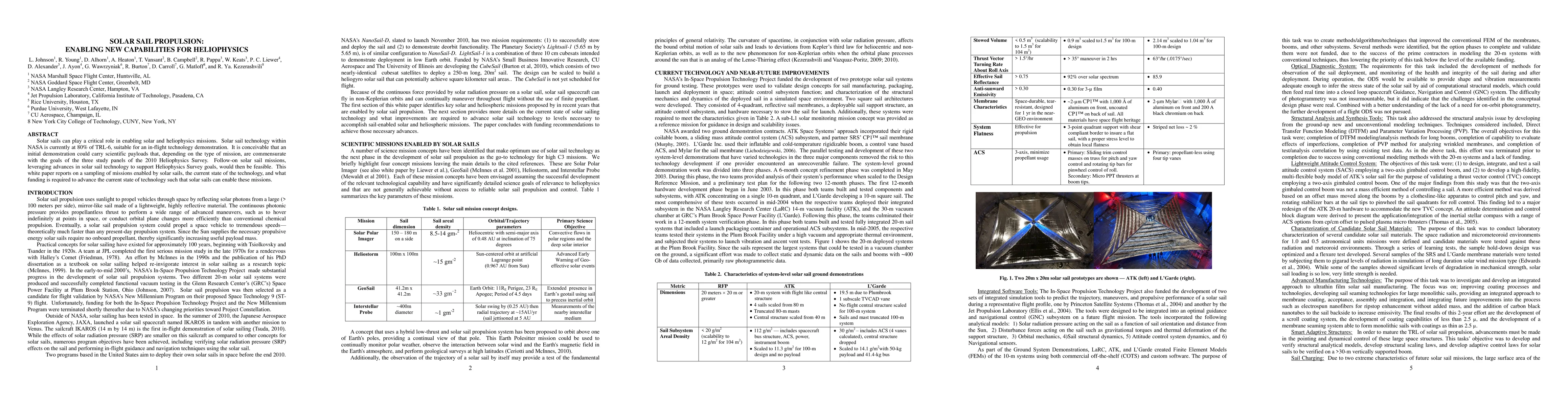 This paper explores the potential of solar sail technology to advance solar and heliophysics missions, noting its current readiness for demonstration. It outlines various missions enabled by solar sails, assesses the technology's current state, and identifies funding needs to further develop this capability.