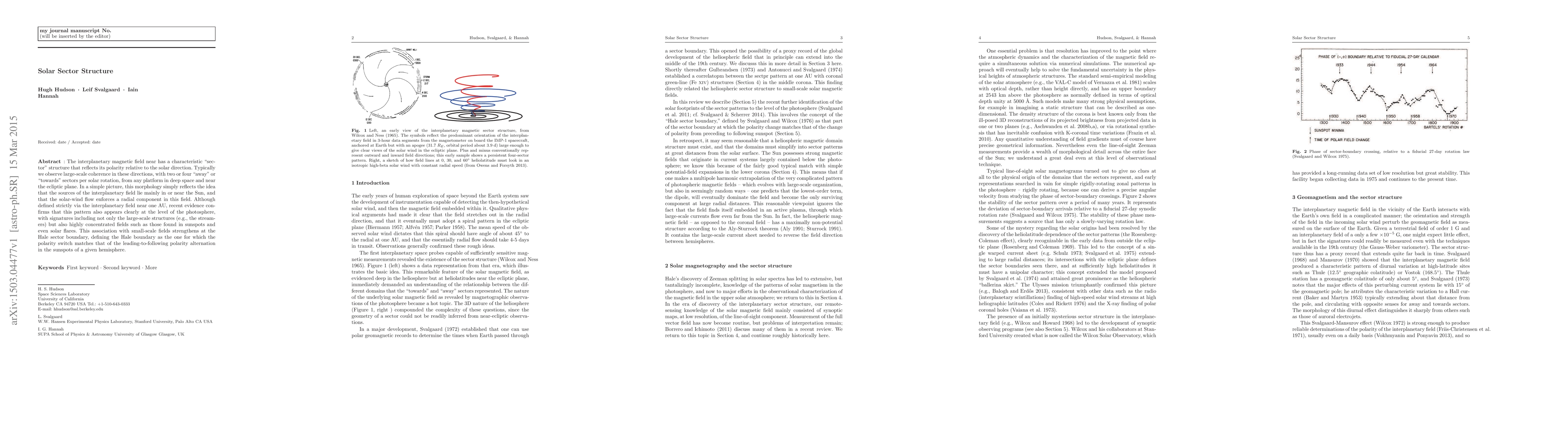 The interplanetary magnetic field near has a characteristic "sector" structure that reflects its polarity relative to the solar direction. Typically we observe large-scale coherence in these directions, with two or four "away" or "towards" sectors per solar rotation, from any platform in deep space and near the ecliptic plane. In a simple picture, this morphology simply reflects the idea that the sources of the interplanetary field lie mainly in or near the Sun, and that the solar-wind flow enforces a radial component in this field. Although defined strictly via the interplanetary field near one AU, recent evidence confirms that this pattern also appears clearly at the level of the photosphere, with signatures including not only the large-scale structures (e.g., the streamers) but also highly concentrated fields such as those found in sunspots and even solar flares. This association with small-scale fields strengthens at the Hale sector boundary, defining the Hale boundary as the one for which the polarity switch matches that of the leading-to-following polarity alternation in the sunspots of a given hemisphere.