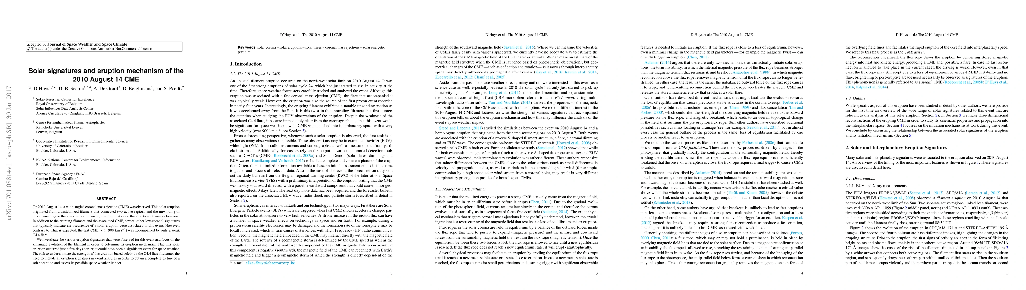 This paper investigates the 2010 August 14 CME, which originated from a destabilized filament connecting two active regions, exhibiting an untwisting motion. Despite a fast CME speed and weak C4.4 flare, the study emphasizes the importance of considering all eruption signatures to fully understand the eruption mechanism and assess its space weather impact.