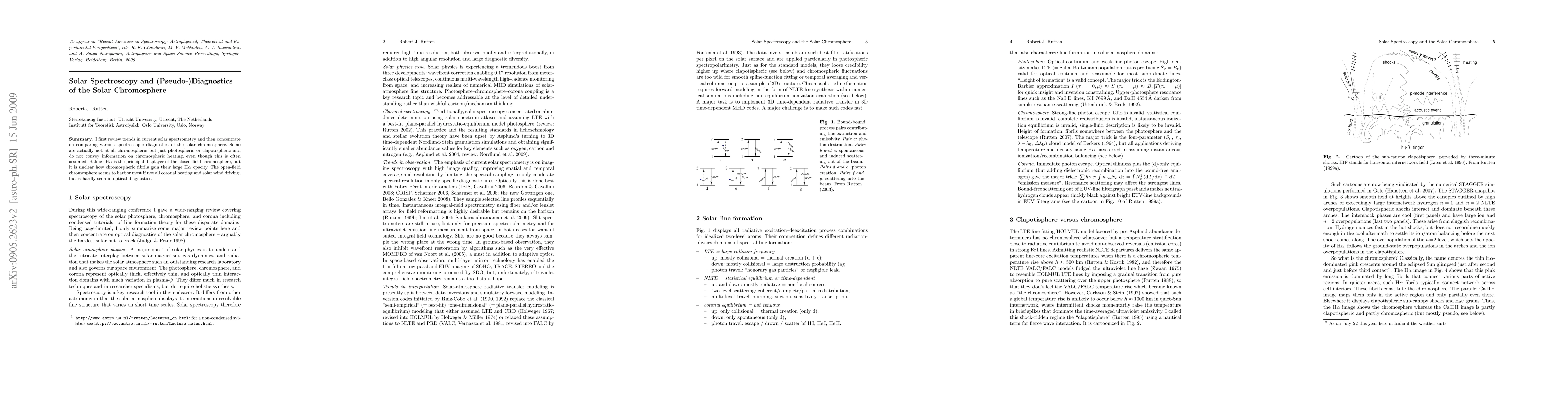 I first review trends in current solar spectrometry and then concentrate on comparing various spectroscopic diagnostics of the solar chromosphere. Some are actually not at all chromospheric but just photospheric or clapotispheric and do not convey information on chromospheric heating, even though this is often assumed. Balmer Halpha is the principal displayer of the closed-field chromosphere, but it is unclear how chromospheric fibrils gain their large Halpha opacity. The open-field chromosphere seems to harbor most if not all coronal heating and solar wind driving, but is hardly seen in optical diagnostics.