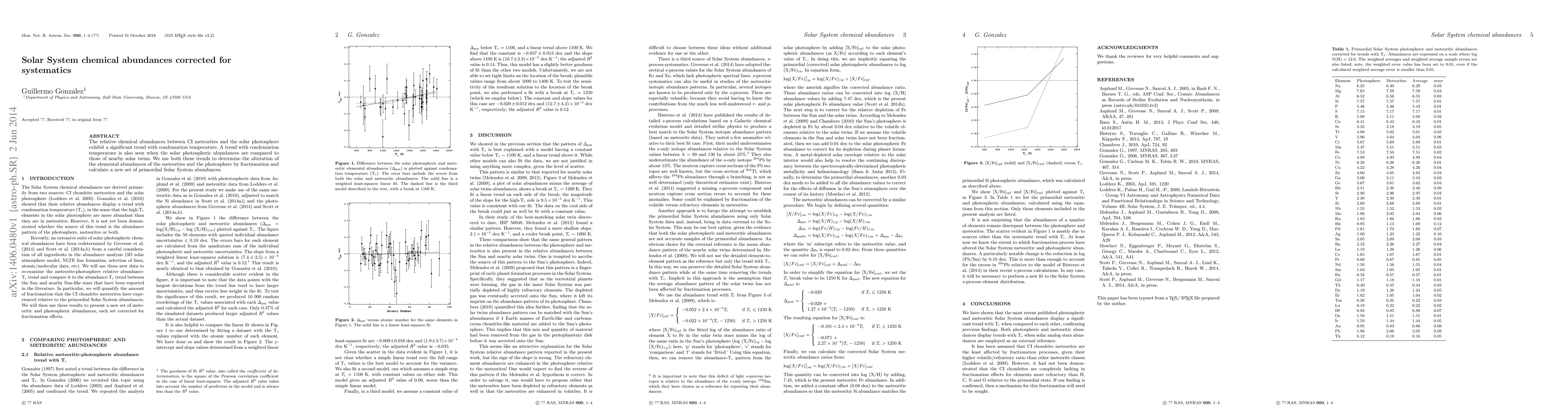 A comprehensive analysis of solar system photospheric and meteoritic abundances was performed using a combination of spectroscopic and laboratory data.