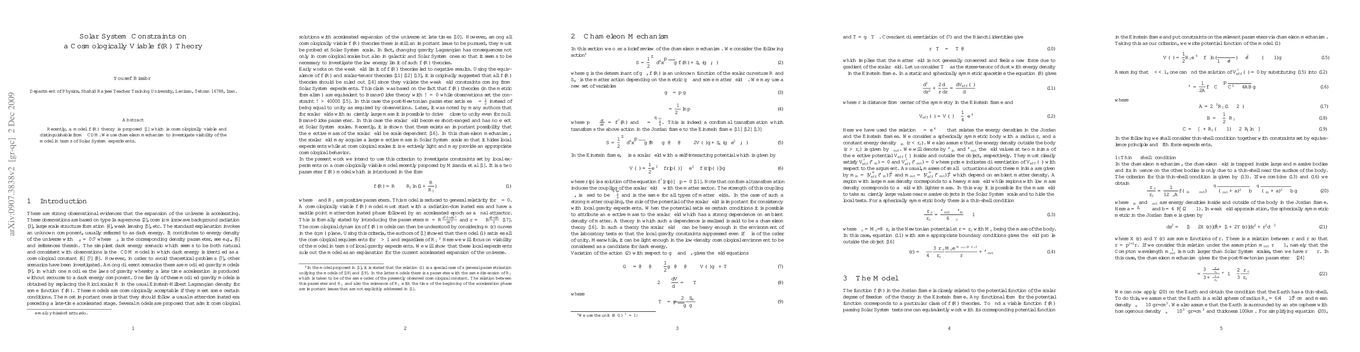 Summary: This paper explores the viability of a proposed $f(R)$ theory in cosmological contexts and examines its consistency with Solar System experiments using the chameleon mechanism to distinguish it from the standard $\Lambda$CDM model.