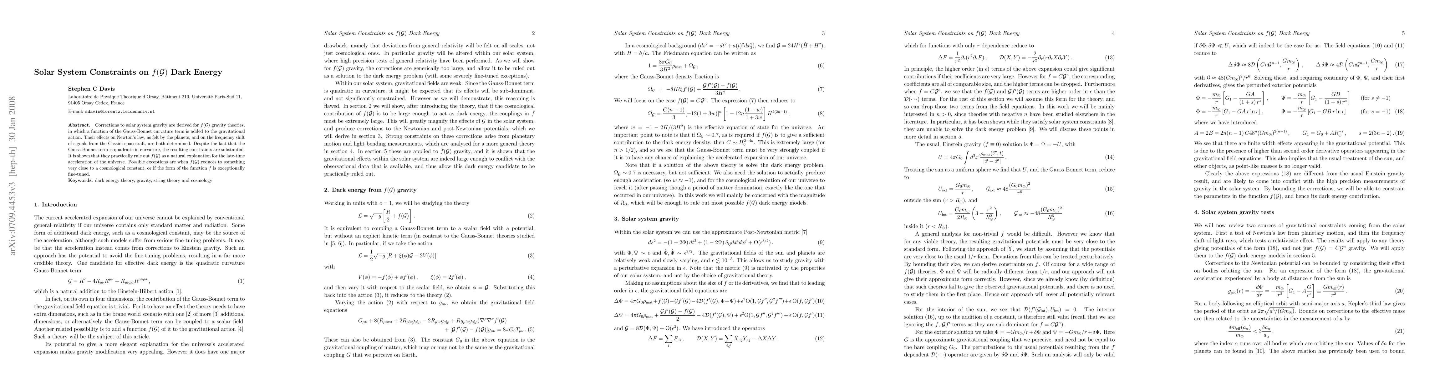 This paper derives corrections to solar system gravity for f(G) gravity theories, showing significant constraints on their viability. The study finds that these theories are practically ruled out as explanations for the universe's late-time acceleration, except in highly fine-tuned cases or when the theory approximates a cosmological constant.