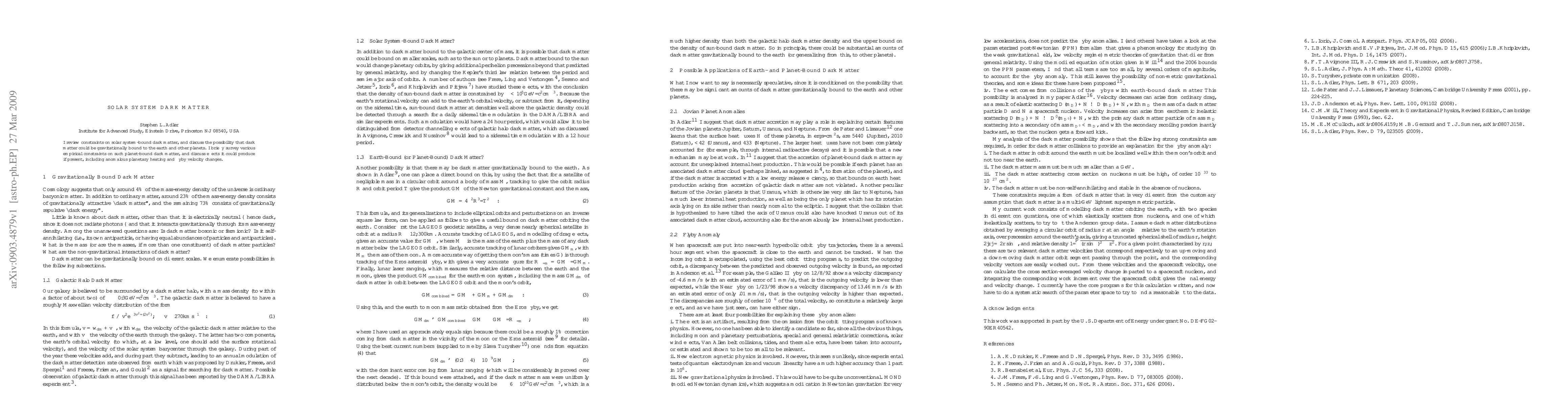 I review constraints on solar system-bound dark matter, and discuss the possibility that dark matter could be gravitationally bound to the earth and other planets. I briefly survey various empirical constraints on such planet-bound dark matter, and discuss effects it could produce if present, including anomalous planetary heating and flyby velocity changes.