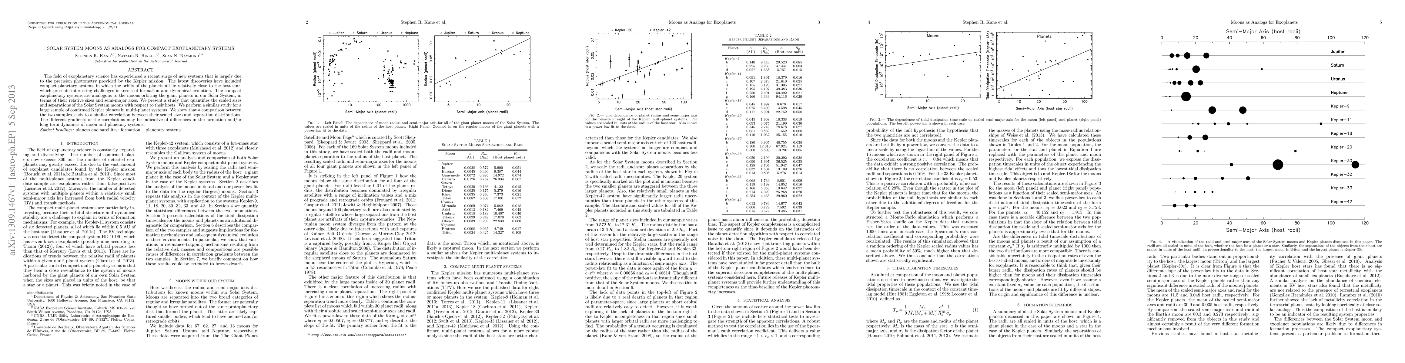 The field of exoplanetary science has experienced a recent surge of new systems that is largely due to the precision photometry provided by the Kepler mission. The latest discoveries have included compact planetary systems in which the orbits of the planets all lie relatively close to the host star, which presents interesting challenges in terms of formation and dynamical evolution. The compact exoplanetary systems are analogous to the moons orbiting the giant planets in our Solar System, in terms of their relative sizes and semi-major axes. We present a study that quantifies the scaled sizes and separations of the Solar System moons with respect to their hosts. We perform a similar study for a large sample of confirmed Kepler planets in multi-planet systems. We show that a comparison between the two samples leads to a similar correlation between their scaled sizes and separation distributions. The different gradients of the correlations may be indicative of differences in the formation and/or long-term dynamics of moon and planetary systems.