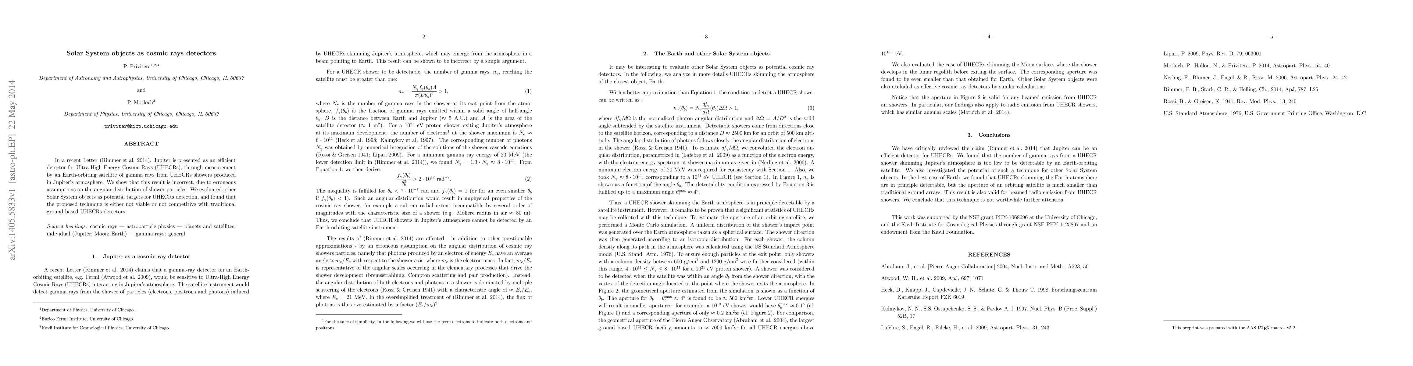 This paper refutes the claim that Jupiter can efficiently detect Ultra-High Energy Cosmic Rays (UHECRs) due to incorrect assumptions about shower particle distribution. It evaluates other Solar System objects and concludes that the proposed technique is neither viable nor competitive with traditional ground-based detectors.