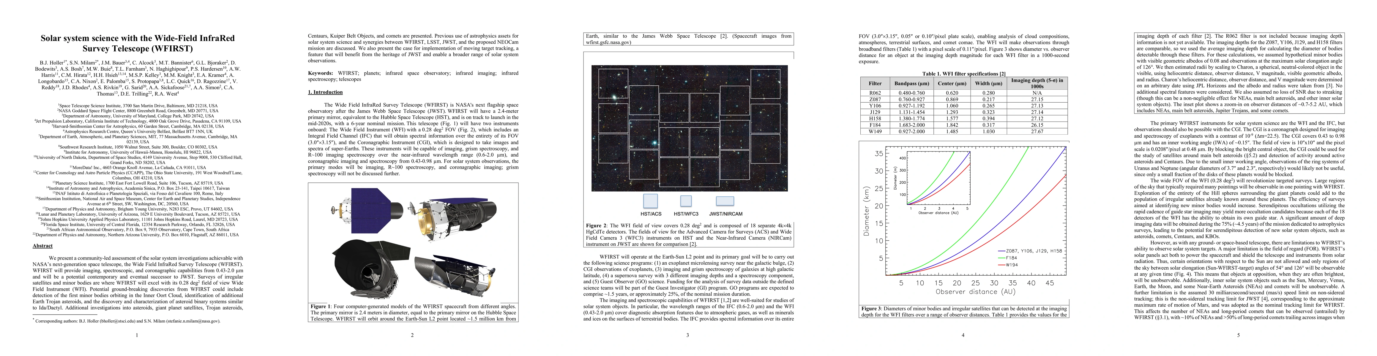We present a community-led assessment of the solar system investigations achievable with NASA's next-generation space telescope, the Wide Field InfraRed Survey Telescope (WFIRST). WFIRST will provide imaging, spectroscopic, and coronagraphic capabilities from 0.43-2.0 $\mu$m and will be a potential contemporary and eventual successor to JWST. Surveys of irregular satellites and minor bodies are where WFIRST will excel with its 0.28 deg$^2$ field of view Wide Field Instrument (WFI). Potential ground-breaking discoveries from WFIRST could include detection of the first minor bodies orbiting in the Inner Oort Cloud, identification of additional Earth Trojan asteroids, and the discovery and characterization of asteroid binary systems similar to Ida/Dactyl. Additional investigations into asteroids, giant planet satellites, Trojan asteroids, Centaurs, Kuiper Belt Objects, and comets are presented. Previous use of astrophysics assets for solar system science and synergies between WFIRST, LSST, JWST, and the proposed NEOCam mission are discussed. We also present the case for implementation of moving target tracking, a feature that will benefit from the heritage of JWST and enable a broader range of solar system observations.