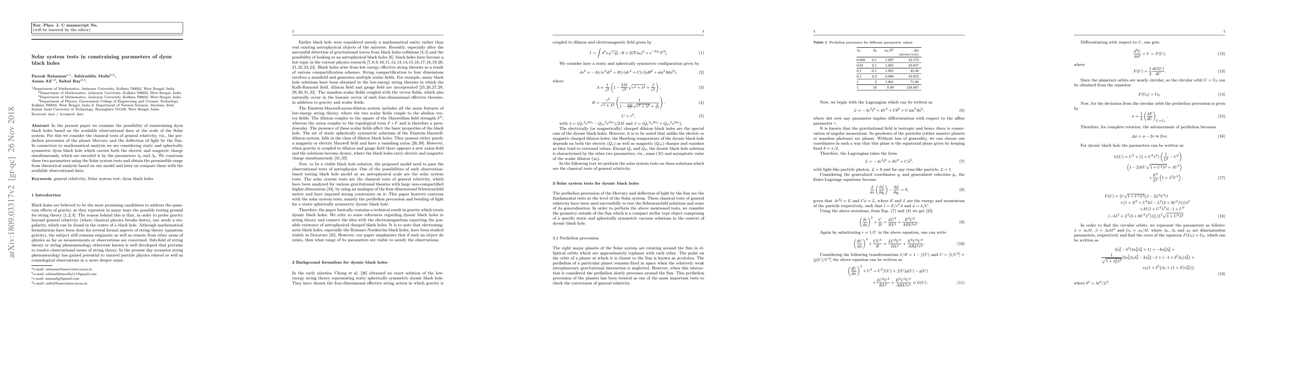 This paper investigates the constraints on dyon black holes' parameters $\lambda_0$ and $\beta_0$ using Solar system tests like Mercury's perihelion precession and light deflection by the Sun, finding permissible ranges for these parameters from observational data.