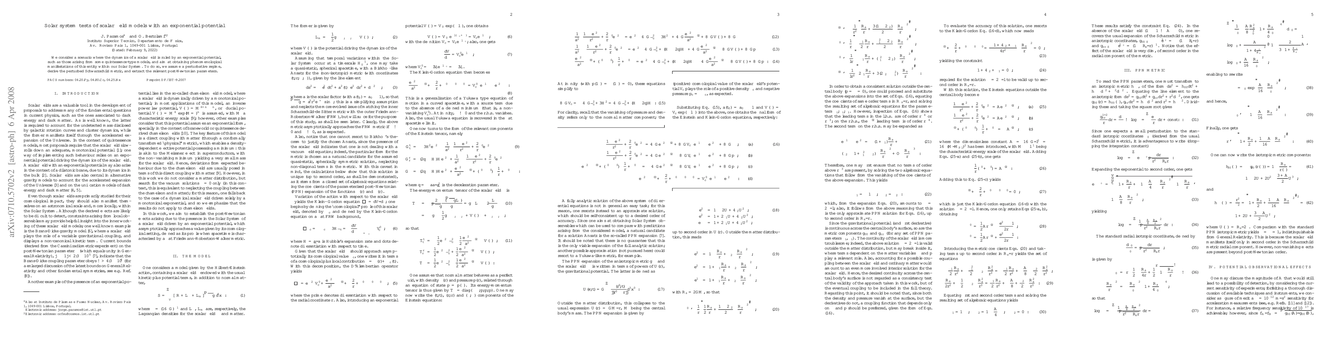This research investigates scalar field models with exponential potentials in quintessence-like scenarios and analyzes their phenomenological effects within the Solar System by deriving the perturbed Schwarzschild metric and post-Newtonian parameters. The focus is on understanding the potential influence of such scalar fields on gravitational dynamics in our Solar System.