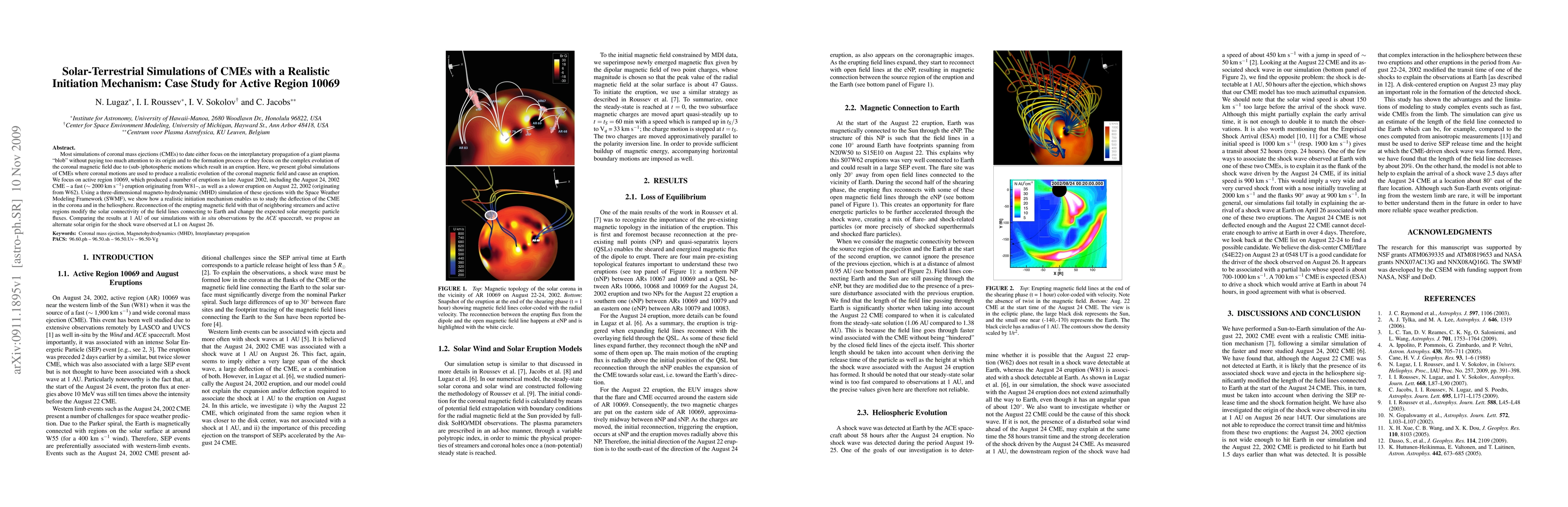 This paper presents global simulations of coronal mass ejections (CMEs) using a realistic initiation mechanism in the Space Weather Modeling Framework (SWMF) to study their evolution and interplanetary effects. Focusing on active region 10069, it demonstrates how reconnection with neighboring magnetic fields modifies solar connectivity and alters solar energetic particle fluxes, proposing an alternate origin for the shock wave observed on August 26, 2002.