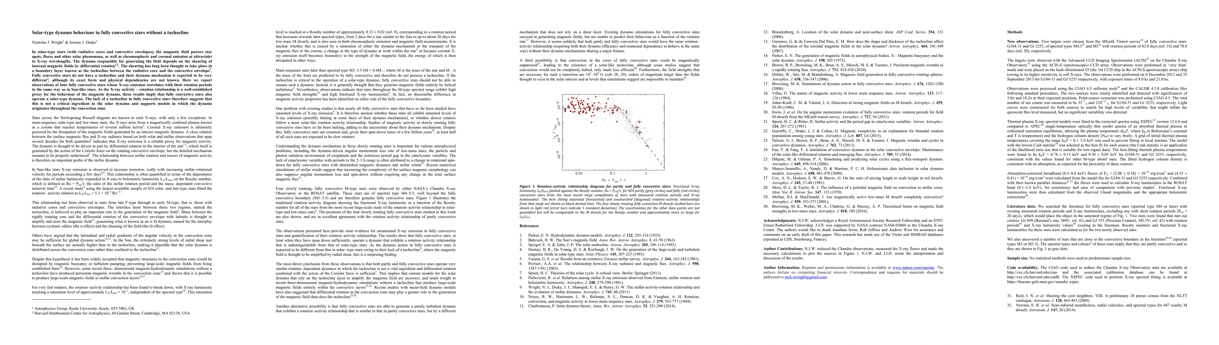 This paper reports observations of X-ray activity in fully convective stars correlating with rotation periods similarly to solar-type stars, indicating that these stars operate a solar-type dynamo despite lacking a tachocline, suggesting the dynamo may originate throughout the convection zone.