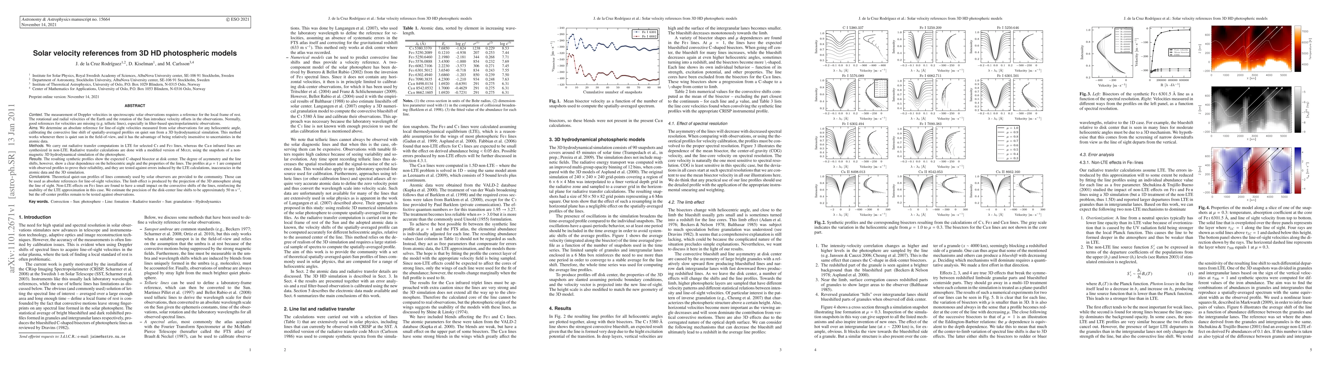 The measurement of Doppler velocities in spectroscopic solar observations requires a reference for the local frame of rest. The rotational and radial velocities of the Earth and the rotation of the Sun introduce velocity offsets in the observations. Normally, good references for velocities are missing (e.g. telluric lines), especially in filter-based spectropolarimetric observations. We determine an absolute reference for line-of-sight velocities measured from solar observations for any heliocentric angle, calibrating the convective line shift of spatially-averaged profiles on quiet sun from a 3D hydrodynamical simulation. This method works whenever there is quiet sun in the field-of-view, and it has the advantage of being relatively insensitive to uncertainties in the atomic data. We carry out radiative transfer computations in LTE for selected C I and Fe I lines, whereas the Ca II infrared lines are synthesized in non-LTE. The degree of asymmetry and the line shifts, however, show a clear dependence on the heliocentric angle and the properties of the lines. The profiles at \mu = 1 are compared with observed profiles to prove their reliability, and they are tested against errors induced by the LTE calculations, inaccuracies in the atomic data and the 3D simulation. Theoretical quiet-sun profiles of lines commonly used by solar observers are provided to the community. Those can be used as absolute references for line-of-sight velocities. The limb effect is produced by the projection of the 3D atmosphere along the line of sight. We estimate the precision of the disk-center line shifts to be approximately 50 m s^-1, but the off-center profiles remain to be tested against observations.