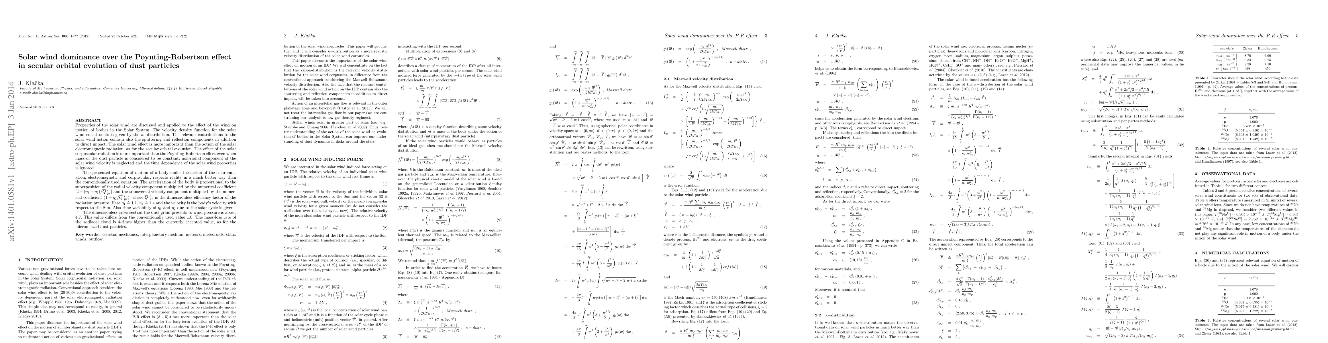 Properties of the solar wind are discussed and applied to the effect of the wind on motion of bodies in the Solar System. The velocity density function for the solar wind constituents is given by the $\kappa-$distribution. The relevant contributions to the solar wind action contain also the sputtering and reflection components in addition to direct impact. The solar wind effect is more important than the action of the solar electromagnetic radiation, as for the secular orbital evolution. The effect of the solar corpuscular radiation is more important than the Poynting-Robertson effect even when mass of the dust particle is considered to be constant, non-radial component of the solar wind velocity is neglected and the time dependence of the solar wind properties is ignored. The presented equation of motion of a body under the action of the solar radiation, electromagnetic and corpuscular, respects reality in a much better way than the conventionally used equation. The acceleration of the body is proportional to the superposition of the radial velocity component multiplied by the numerical coefficient $[2 + (\eta_{1} + \eta_{2})/ \overline{Q} ~'_{pr}]$ and the transversal velocity component multiplied by the numerical coefficient $(1 + \eta_{2}/ \overline{Q} ~'_{pr})$, where $\overline{Q} ~'_{pr}$ is the dimensionless efficiency factor of the radiation pressure. Here $\eta_{1}$ $\doteq$ 1.1, $\eta_{2}$ $\doteq$ 1.4 and the velocity is the body's velocity with respect to the Sun. Also time variability of $\eta_{1}$ and $\eta_{2}$ due to the solar cycle is given. The dimensionless cross section the dust grain presents to wind pressure is about 4.7. This value differs from the conventionally used value 1.0. The mass-loss rate of the zodiacal cloud is 4-times higher than the currently accepted value, as for the micron-sized dust particles.