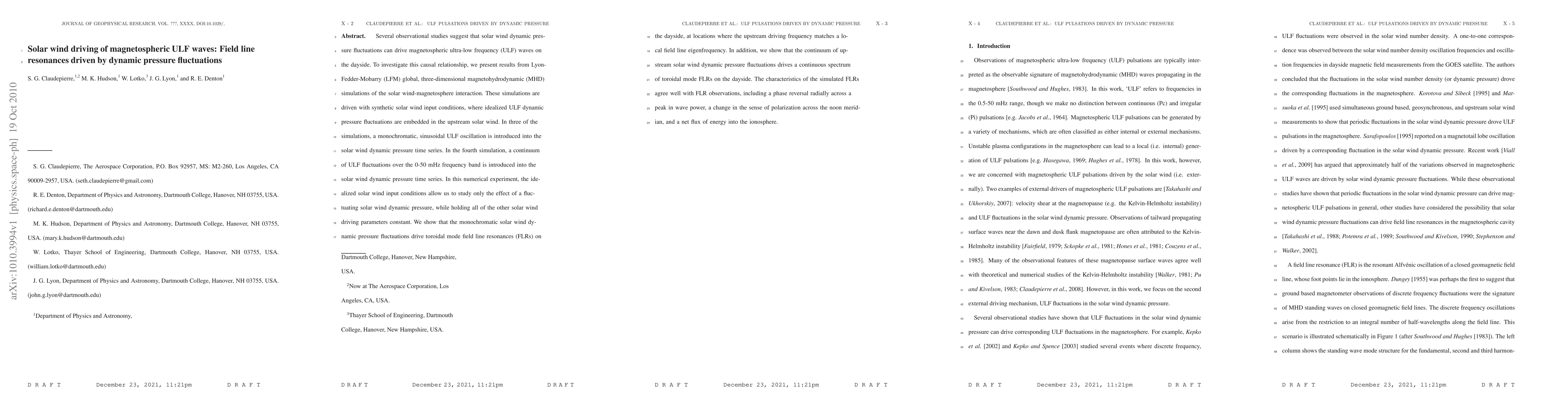 The research utilizes Lyon-Fedder-Mobarry (LFM) global, three-dimensional magnetohydrodynamic (MHD) simulations to study the role of solar wind dynamic pressure fluctuations in generating magnetospheric ultra-low frequency (ULF) waves.