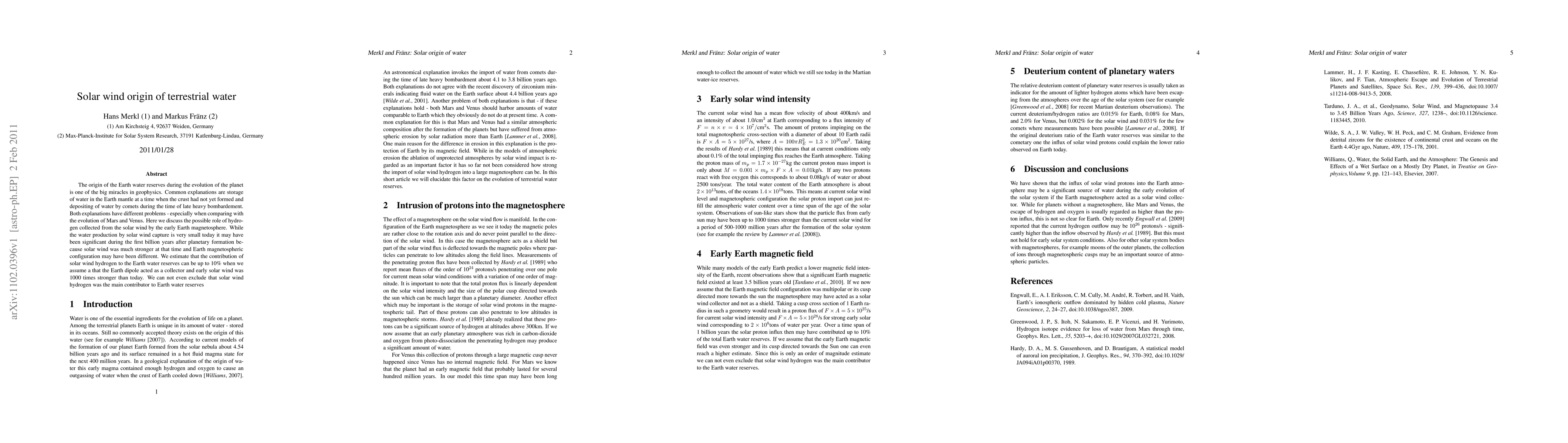 The origin of the Earth water reserves during the evolution of the planet is one of the big miracles in geophysics. Common explanations are storage of water in the Earth mantle at a time when the crust had not yet formed and depositing of water by comets during the time of late heavy bombardement. Both explanations have different problems - especially when comparing with the evolution of Mars and Venus. Here we discuss the possible role of hydrogen collected from the solar wind by the early Earth magnetosphere. While the water production by solar wind capture is very small today it may have been significant during the first billion years after planetary formation because solar wind was much stronger at that time and Earth magnetospheric configuration may have been different. We estimate that the contribution of solar wind hydrogen to the Earth water reserves can be up to 10% when we assume a that the Earth dipole acted as a collector and early solar wind was 1000 times stronger than today. We can not even exclude that solar wind hydrogen was the main contributor to Earth water reserves.