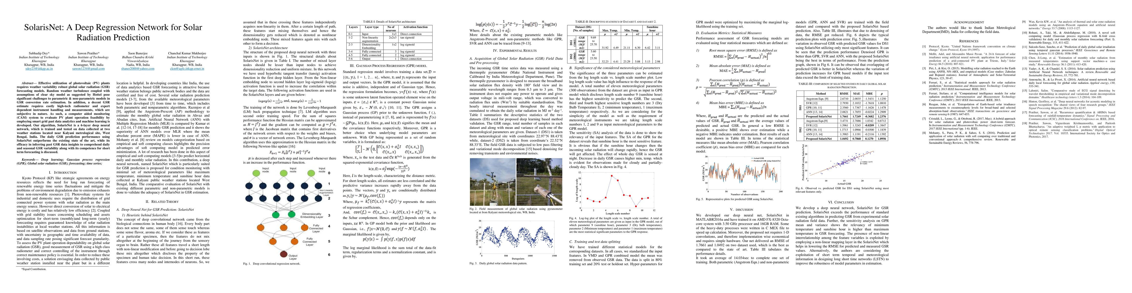 SolarisNet is a 6-layer deep regression network designed for accurate daily global solar radiation (GSR) forecasting, outperforming existing models. It leverages historical smart grid data and deep learning to predict GSR, offering insights into daily and seasonal variability and enhancing photovoltaic plant operation feasibility.