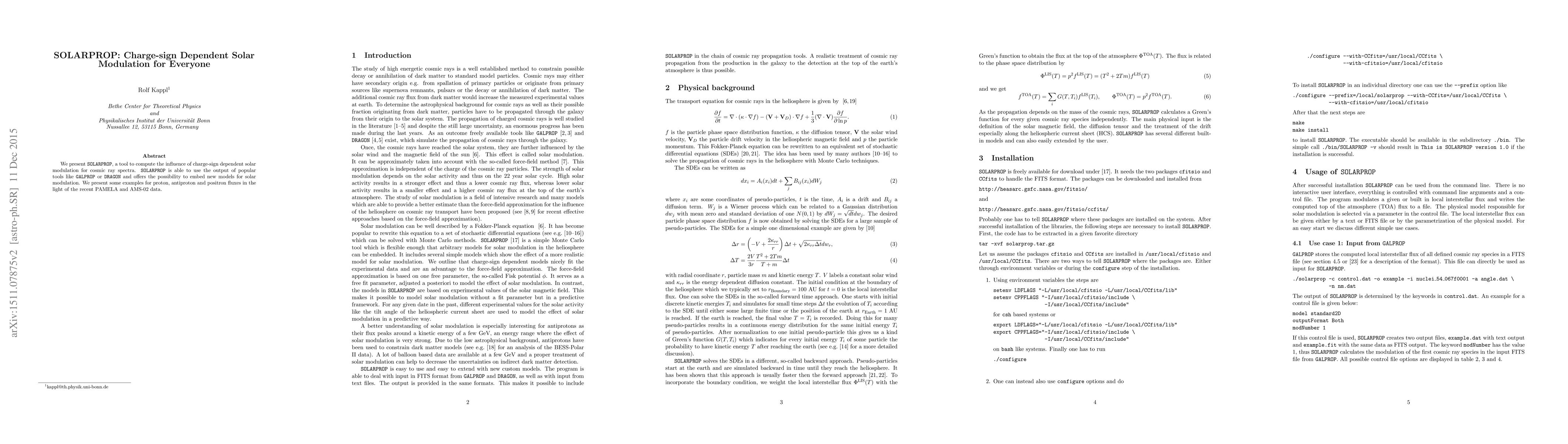 SOLARPROP is a tool for calculating charge-sign dependent solar modulation effects on cosmic ray spectra, compatible with outputs from GALPROP and DRAGON, and it can incorporate new solar modulation models. It demonstrates applications using recent PAMELA and AMS-02 data for proton, antiproton, and positron fluxes.