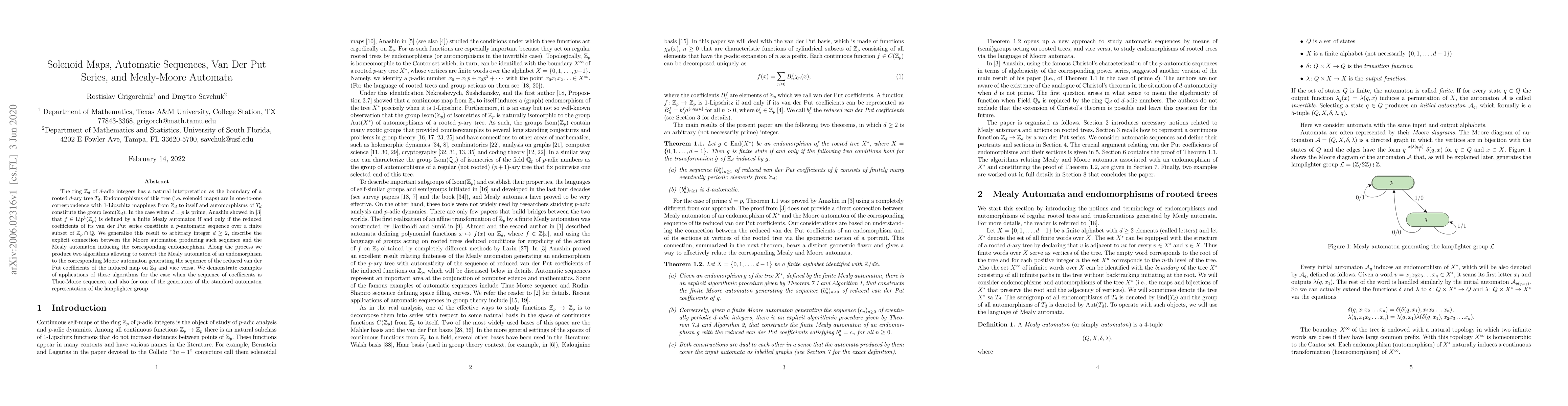 The ring $\mathbb Z_d$ of $d$-adic integers has a natural interpretation as the boundary of a rooted $d$-ary tree $T_d$. Endomorphisms of this tree (i.e. solenoid maps) are in one-to-one correspondence with 1-Lipschitz mappings from $\mathbb Z_d$ to itself and automorphisms of $T_d$ constitute the group $\mathrm{Isom}(\mathbb Z_d)$. In the case when $d=p$ is prime, Anashin showed that $f\in\mathrm{Lip}^1(\mathbb Z_p)$ is defined by a finite Mealy automaton if and only if the reduced coefficients of its van der Put series constitute a $p$-automatic sequence over a finite subset of $\mathbb Z_p\cap\mathbb Q$. We generalize this result to arbitrary integer $d\geq 2$, describe the explicit connection between the Moore automaton producing such sequence and the Mealy automaton inducing the corresponding endomorphism. Along the process we produce two algorithms allowing to convert the Mealy automaton of an endomorphism to the corresponding Moore automaton generating the sequence of the reduced van der Put coefficients of the induced map on $\mathbb Z_d$ and vice versa. We demonstrate examples of applications of these algorithms for the case when the sequence of coefficients is Thue-Morse sequence, and also for one of the generators of the standard automaton representation of the lamplighter group.