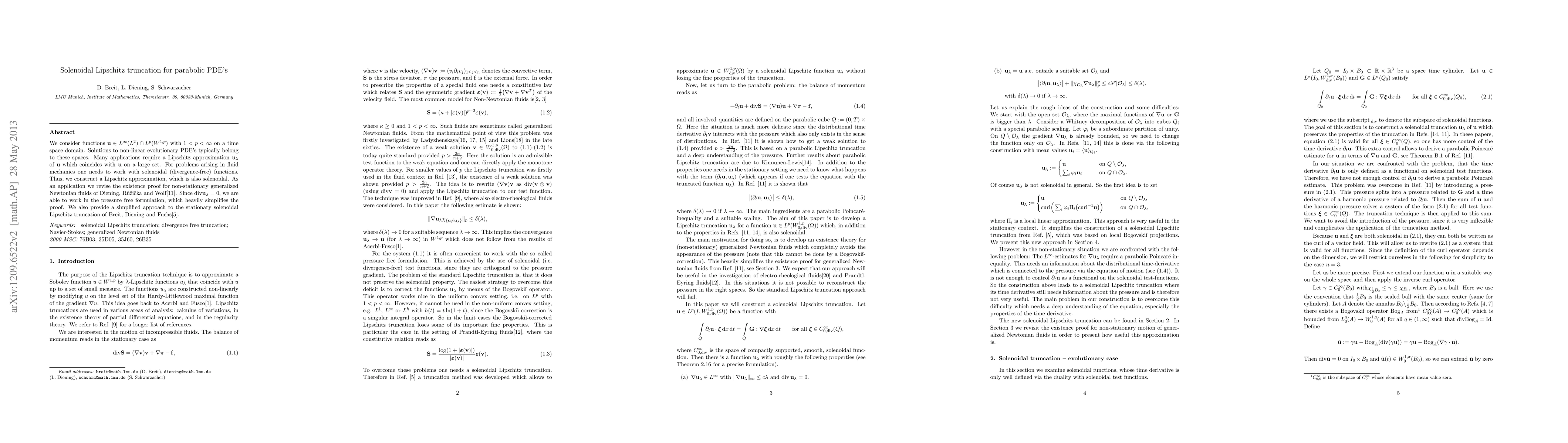 Researchers developed a method to create a solenoidal Lipschitz approximation of functions that solve parabolic PDEs, simplifying the proof for non-stationary fluids and providing a new approach to stationary problems.