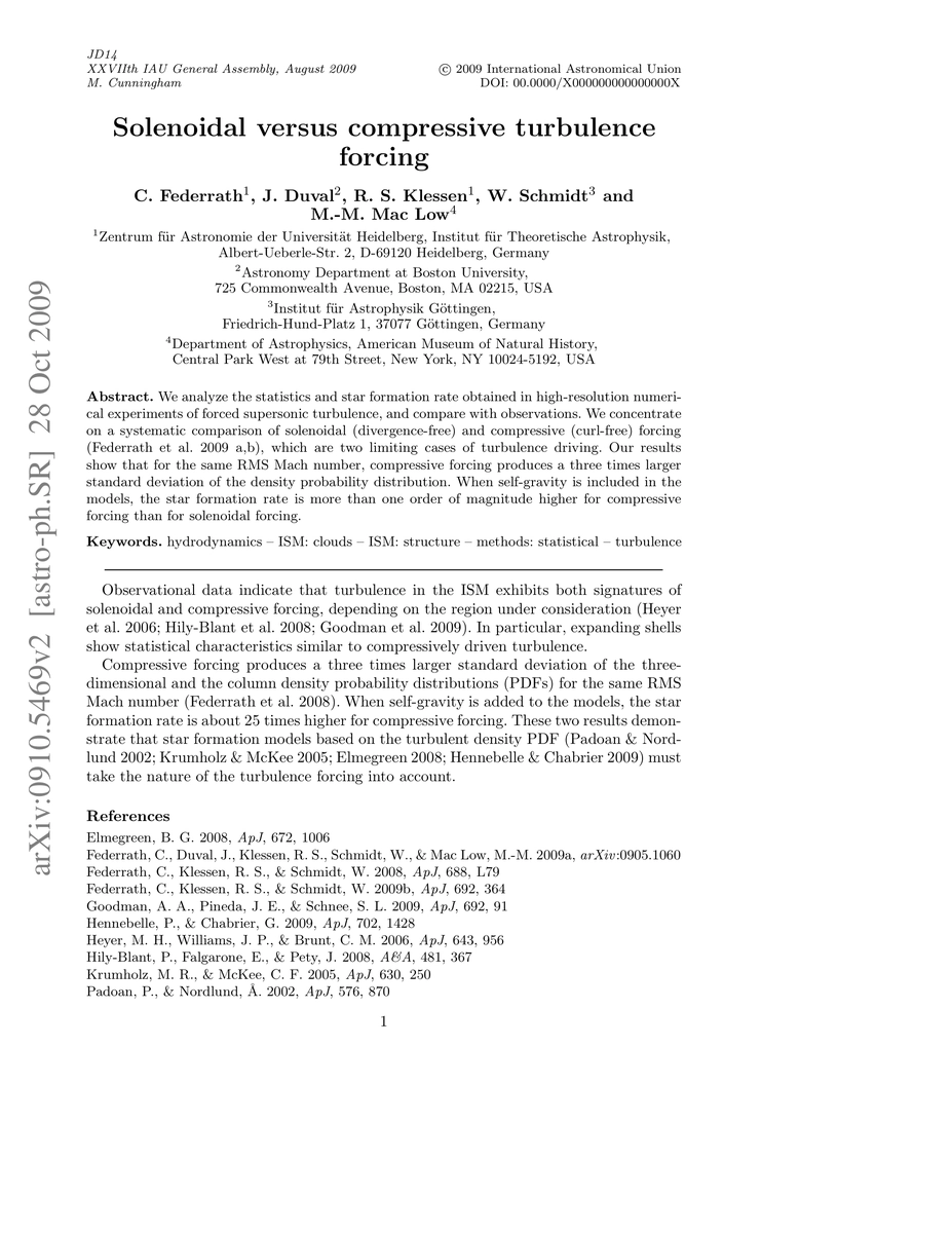 This study compares solenoidal and compressive turbulence forcing in high-resolution numerical simulations of supersonic turbulence, finding that compressive forcing yields a significantly larger density fluctuation and a much higher star formation rate when self-gravity is included.