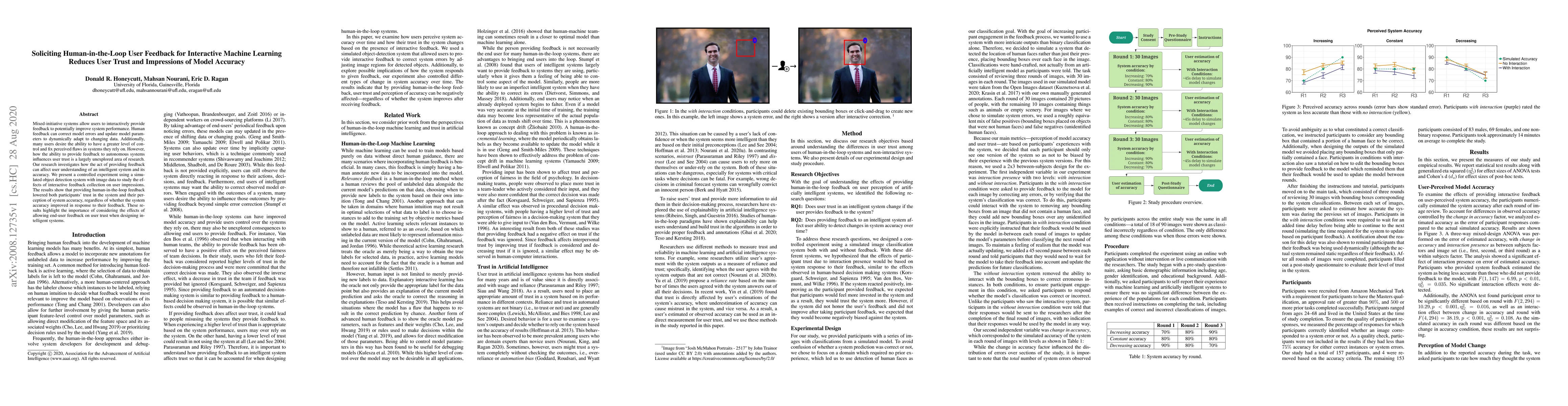 This study explores how soliciting user feedback in interactive machine learning systems affects user trust and perceived model accuracy. Findings from a controlled experiment with a simulated object detection system reveal that allowing users to provide feedback reduces their trust and perceived accuracy of the system, regardless of actual performance improvements.