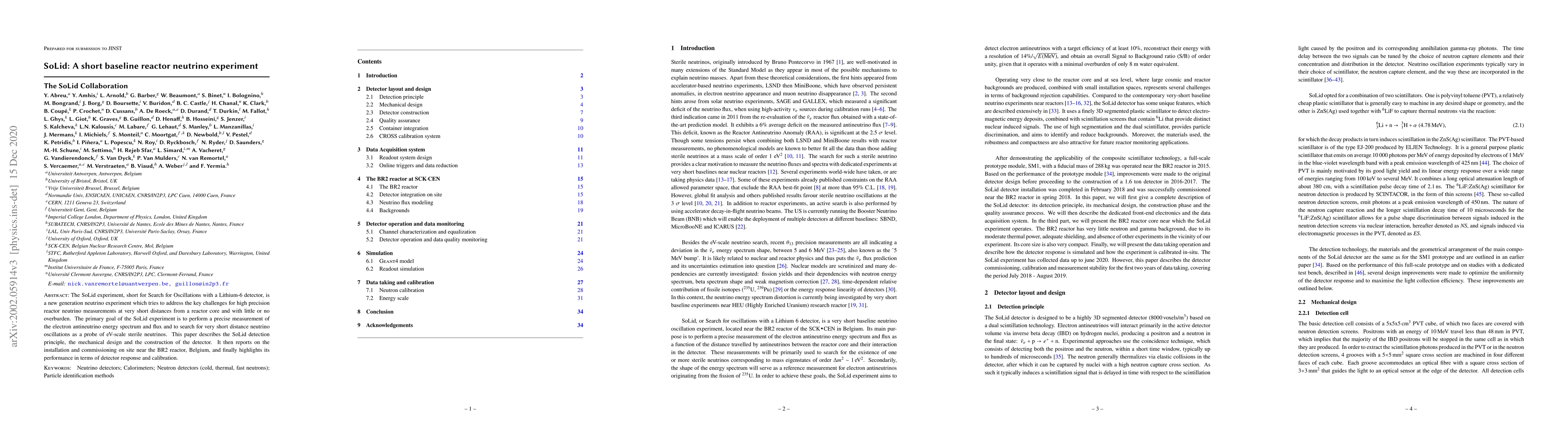 The SoLid experiment aims to precisely measure electron antineutrino energy spectrum and flux, and search for short-distance neutrino oscillations indicative of eV-scale sterile neutrinos. The paper details the detector's design, installation near the BR2 reactor, and its performance in calibration and response.