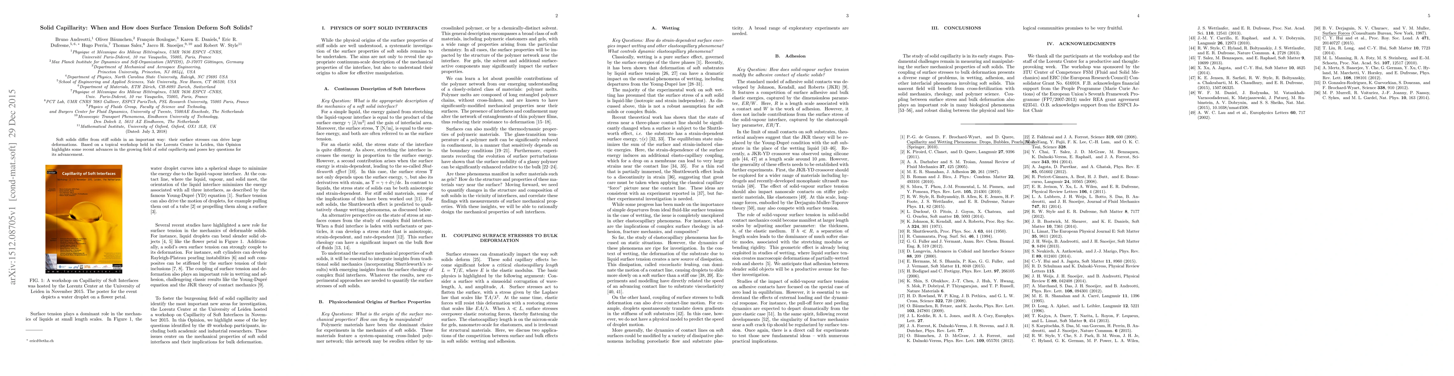 Soft solids differ from stiff solids in an important way: their surface stresses can drive large deformations. Based on a topical workshop held in the Lorentz Center in Leiden, this Opinion highlights some recent advances in the growing field of solid capillarity and poses key questions for its advancement.