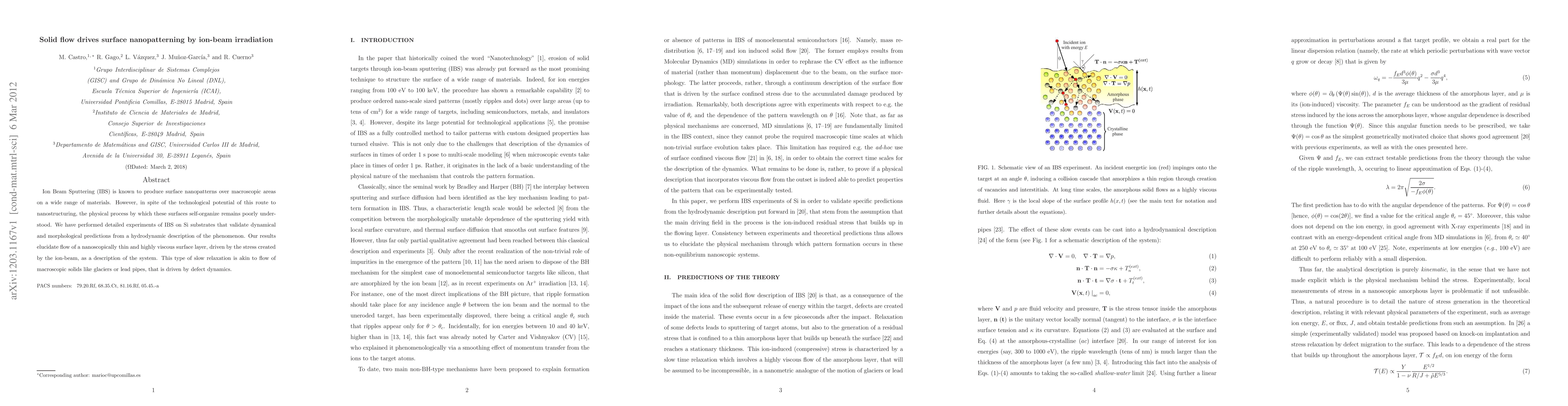 The paper presents a hydrodynamic description of surface nanopatterning by Ion Beam Sputtering, elucidating the role of a thin, highly viscous surface layer flow driven by ion-beam stress.