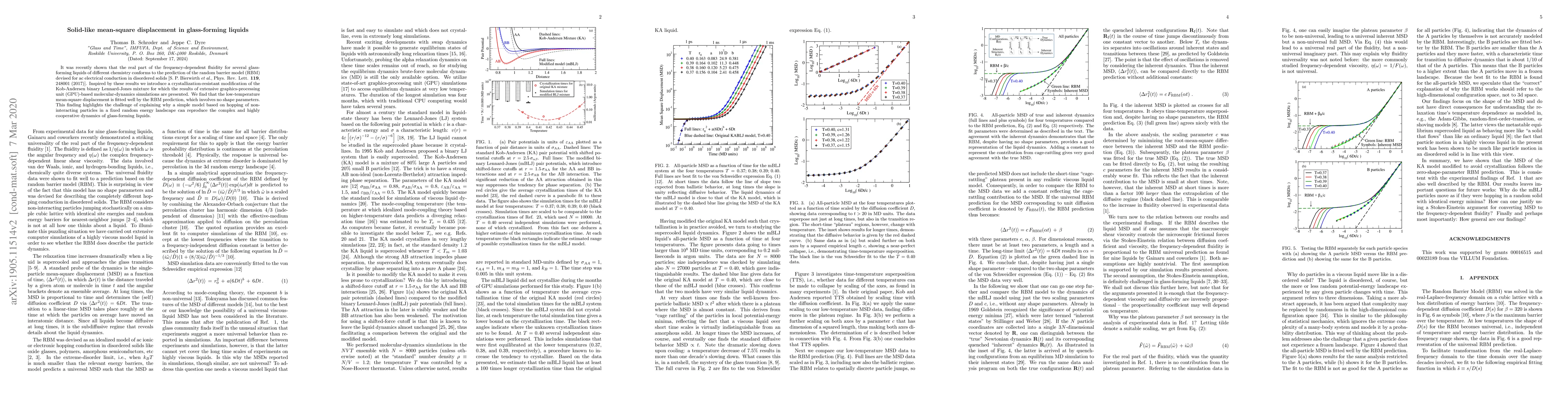 This paper demonstrates that the random barrier model (RBM) predicts the low-temperature mean-square displacement in glass-forming liquids, as shown through GPU-based molecular-dynamics simulations of a modified Kob-Andersen binary Lennard-Jones mixture, highlighting the model's ability to capture complex dynamics despite its simplicity.