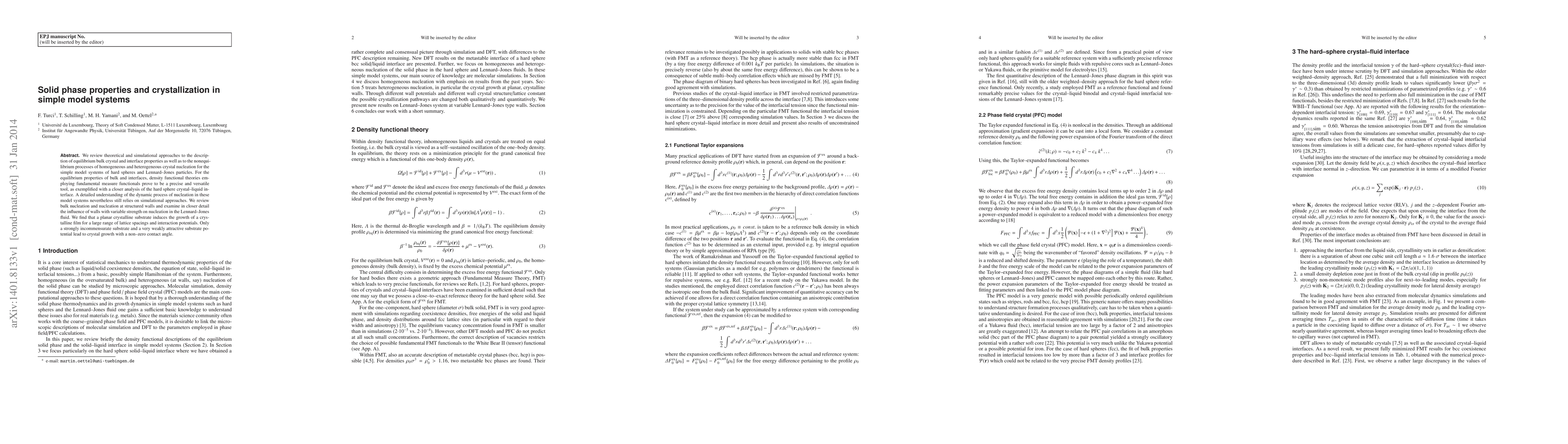 We review theoretical and simulational approaches to the description of equilibrium bulk crystal and interface properties as well as to the nonequilibrium processes of homogeneous and heterogeneous crystal nucleation for the simple model systems of hard spheres and Lennard-Jones particles. For the equilibrium properties of bulk and interfaces, density functional theories employing fundamental measure functionals prove to be a precise and versatile tool, as exemplified with a closer analysis of the hard sphere crystalliquid interface. A detailed understanding of the dynamic process of nucleation in these model systems nevertheless still relies on simulational approaches. We review bulk nucleation and nucleation at structured walls and examine in closer detail the influence of walls with variable strength on nucleation in the Lennard-Jones fluid. We find that a planar crystalline substrate induces the growth of a crystalline film for a large range of lattice spacings and interaction potentials. Only a strongly incommensurate substrate and a very weakly attractive substrate potential lead to crystal growth with a non-zero contact angle.
