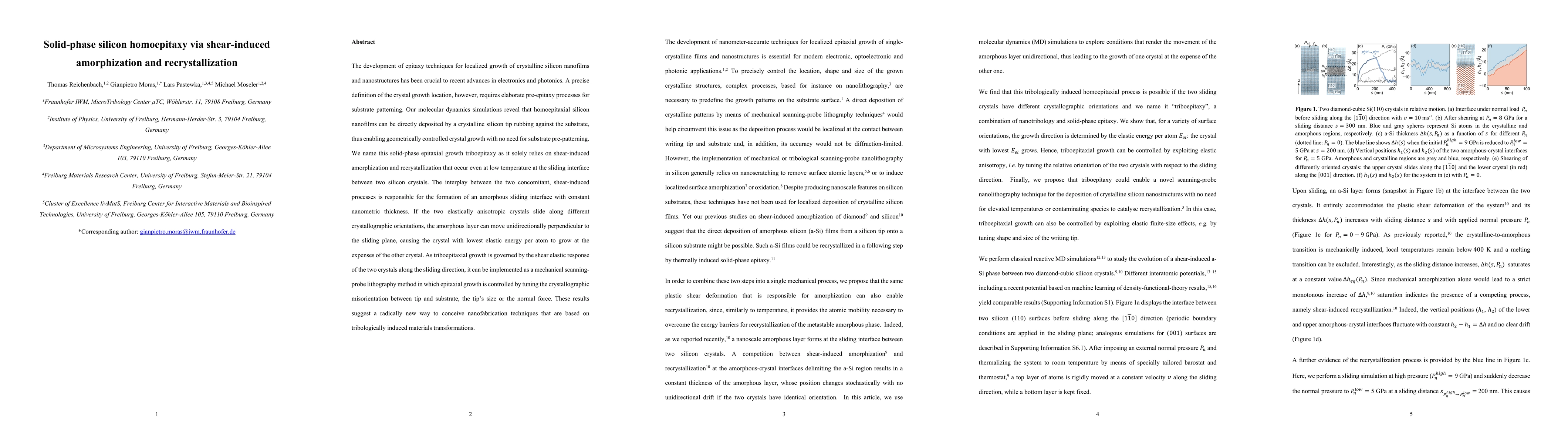 Researchers develop a new method called tribioepitaxy to grow crystalline silicon nanofilms without pre-patterning the substrate, using shear-induced amorphization and recrystallization at low temperatures.