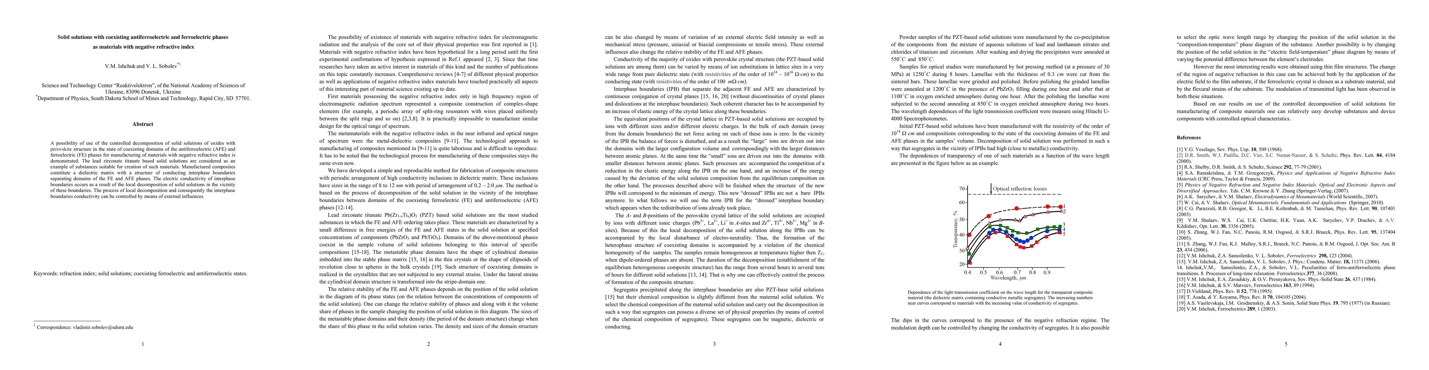 This paper explores the use of solid solutions of perovskite oxides with coexisting antiferroelectric and ferroelectric phases to create materials with a negative refractive index. Lead zirconate titanate-based solid solutions are highlighted as suitable candidates, with their local decomposition controlled by external influences to manage the conductive interphase boundaries.