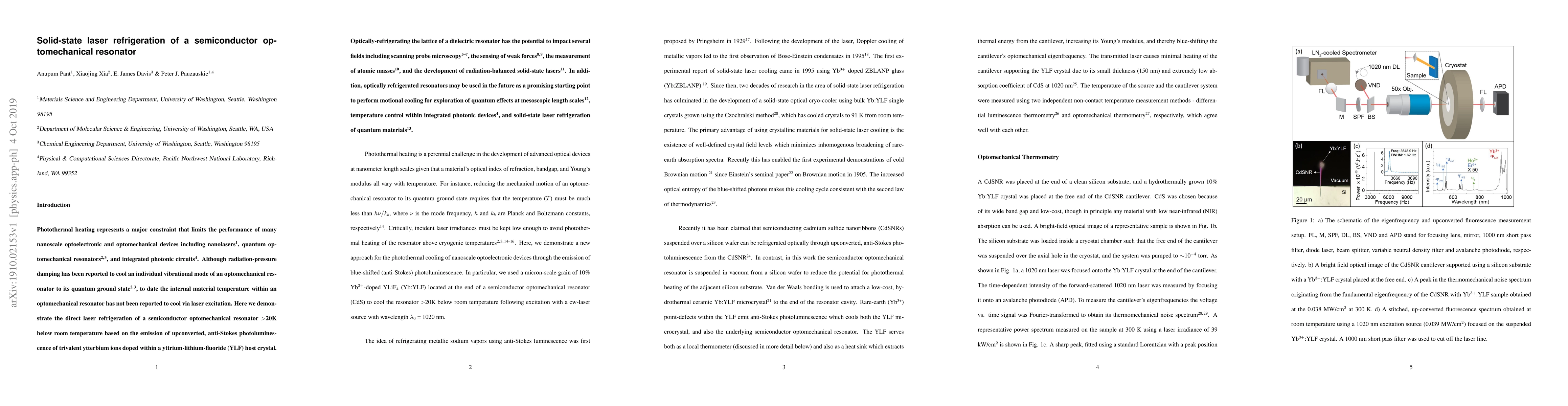 This paper demonstrates the laser refrigeration of a semiconductor optomechanical resonator to temperatures >20K below room temperature using upconverted anti-Stokes photoluminescence from ytterbium ions in a YLF crystal. This technique could advance fields like scanning probe microscopy and quantum optomechanical research.