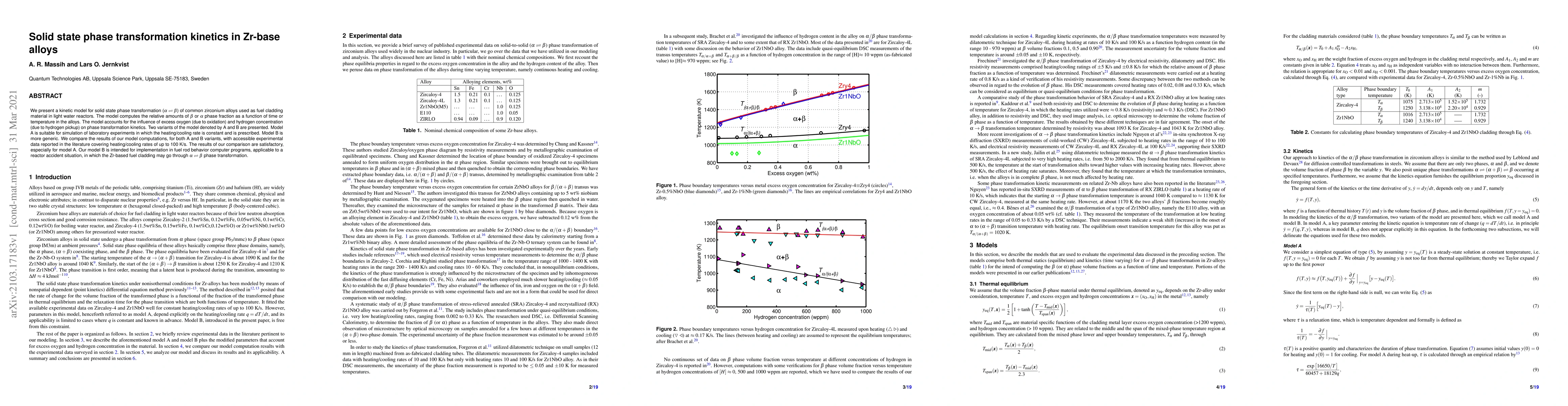 This paper introduces a kinetic model for the solid state phase transformation in Zr-base alloys, focusing on the alpha-beta transition relevant to nuclear fuel cladding. The model, with two variants, accurately simulates phase fractions under varying heating/cooling rates, accounting for effects of oxygen and hydrogen. Model A is tailored for controlled lab experiments, while Model B is designed for reactor accident simulations.