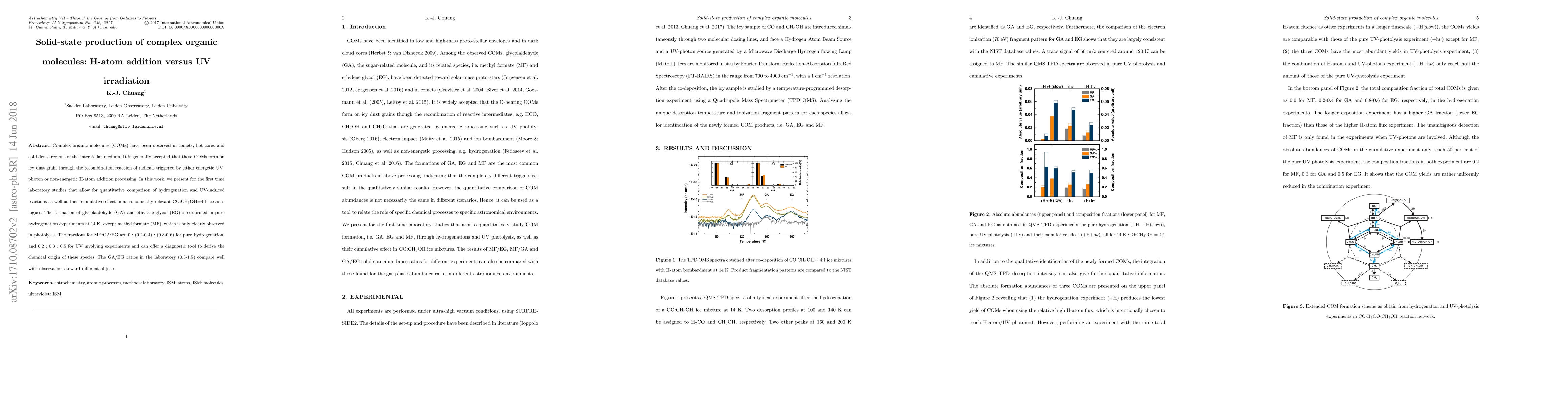 Lab experiments confirm formation of glycolaldehyde and ethylene glycol through hydrogenation and UV irradiation in icy dust grains, providing a diagnostic tool for understanding complex organic molecule origins.
