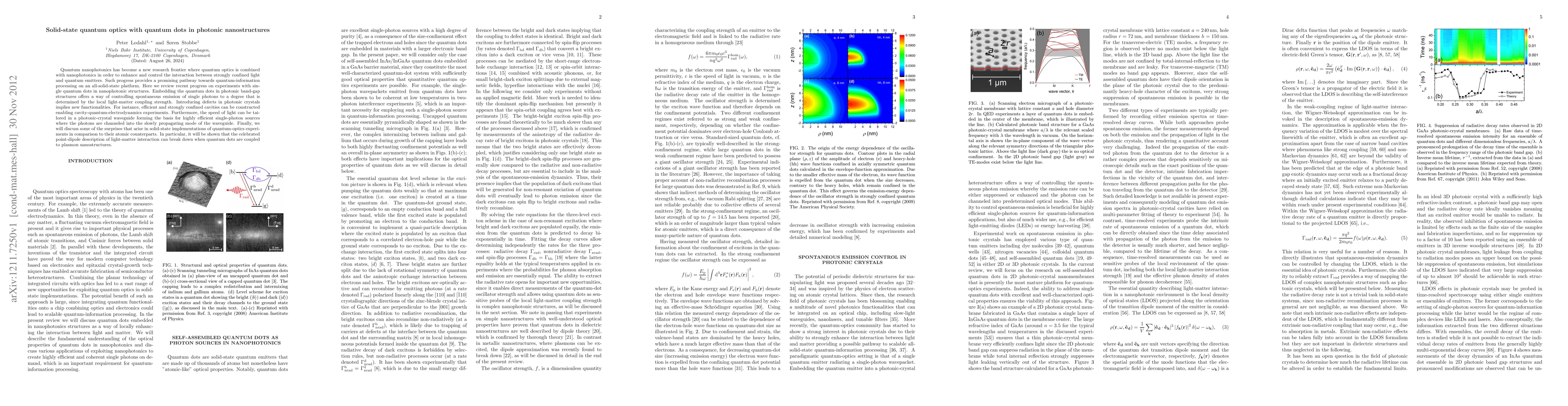 This paper reviews advancements in solid-state quantum optics using quantum dots embedded in photonic nanostructures, highlighting enhanced control over light-matter interactions and the potential for quantum information processing. It also discusses the breakdown of traditional light-matter interaction models in plasmonic environments.