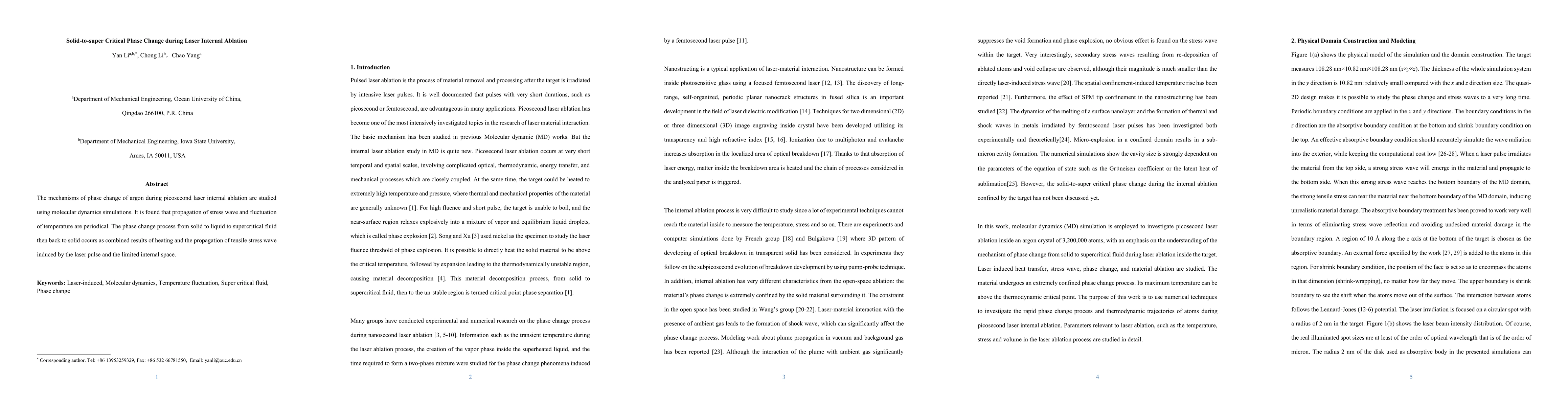 This study uses molecular dynamics simulations to explore the phase change mechanisms of argon during picosecond laser internal ablation, revealing a periodic process of solid-to-liquid-to-supercritical fluid and back to solid, driven by laser-induced heating and tensile stress wave propagation.