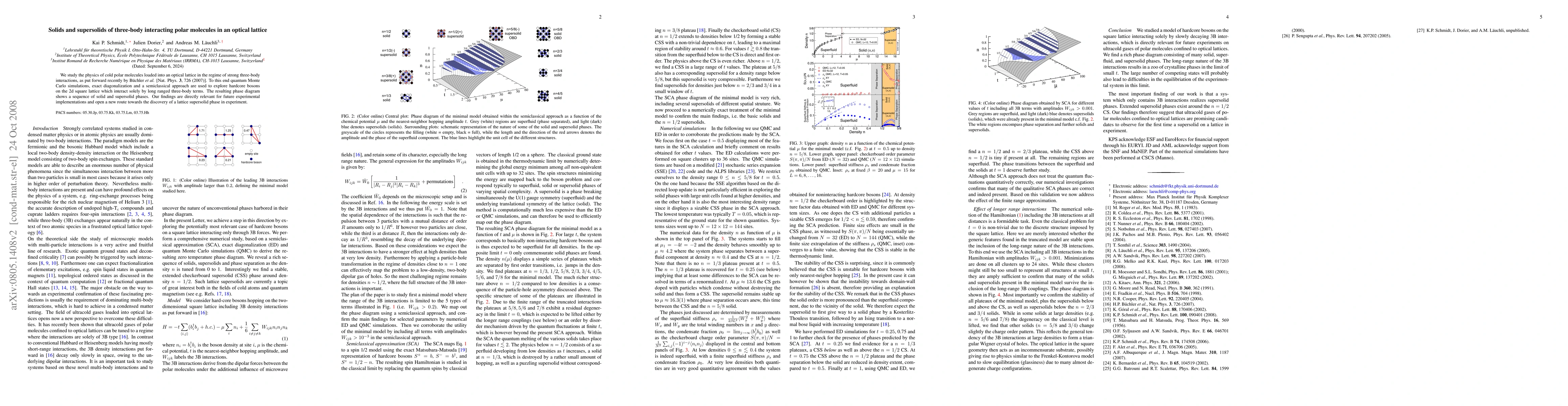 This paper investigates the behavior of cold polar molecules in an optical lattice under strong three-body interactions, revealing a sequence of solid and supersolid phases through quantum Monte Carlo simulations and exact diagonalization. The findings suggest a new pathway for discovering lattice supersolids in future experiments.